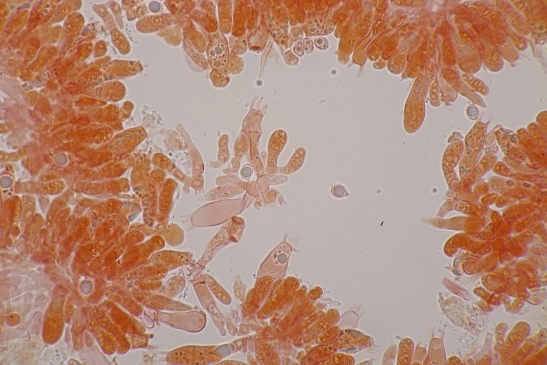 4. Botryobasidium aureum. Im Feld hatte ich wegen des üppigen Wachstums auf etwas anderes gehofft, aber das Mikro war dann eindeutig.