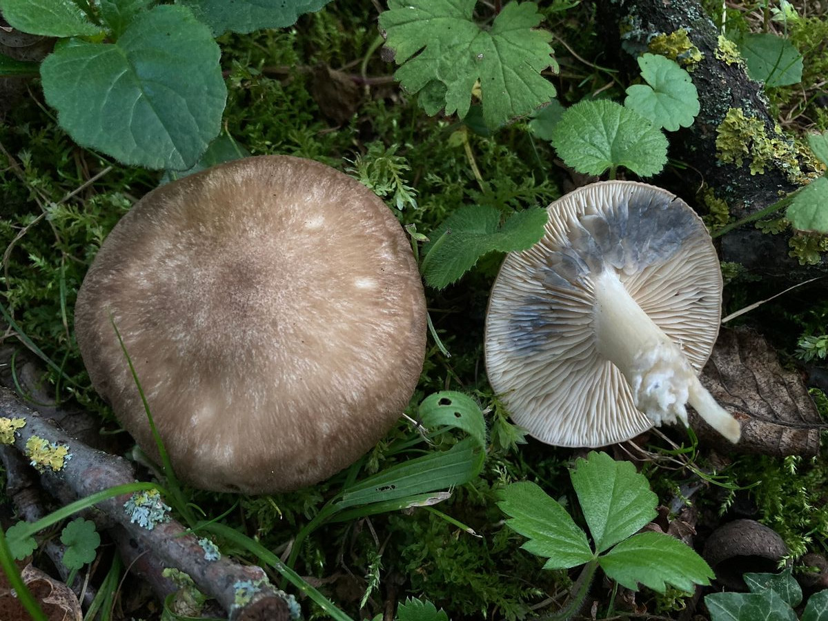 Das sollte schon Lyophyllum caerulescens sein. Die anderen Arten schwärzen sofort, hier sieht man das Blau sehr gut.