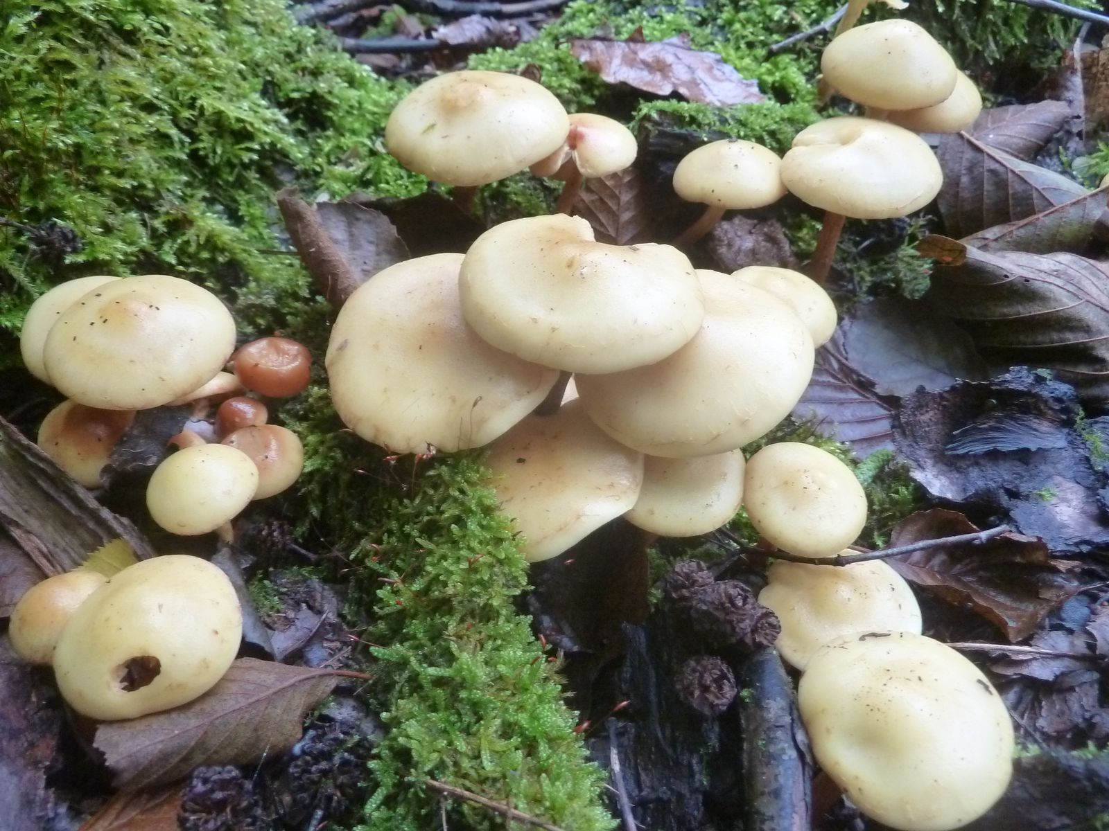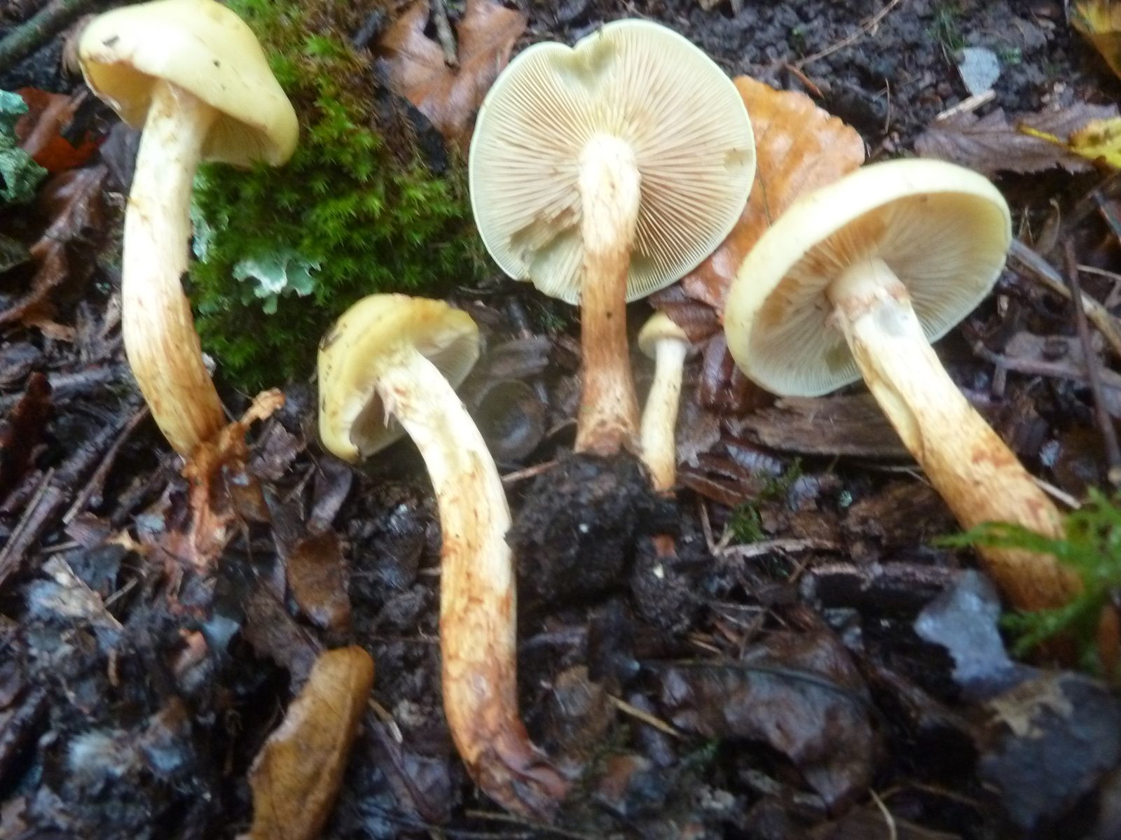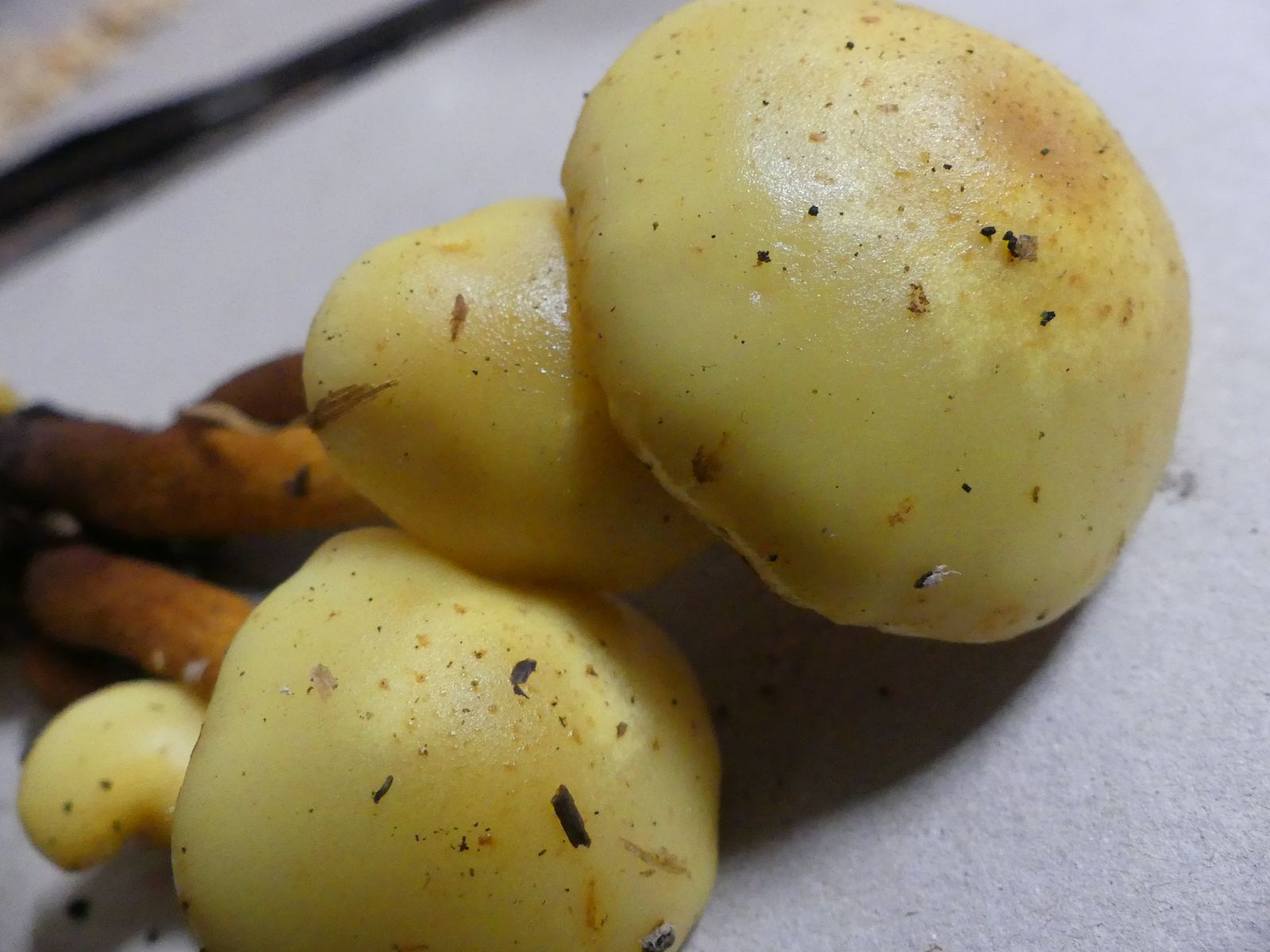 Wenn ich mich bei Pholiota/Flammula umschaue, lande ich beim Erlen-Schüppling. Diese Art hatte ich noch nie und möchte daher fragen, ob das passt. Markant finde ich die glockenförmigen Hüte. Gminder/Karasch merken dazu an, dass diese Art sehr variabel ist und eine Reihe von Varietäten existieren.