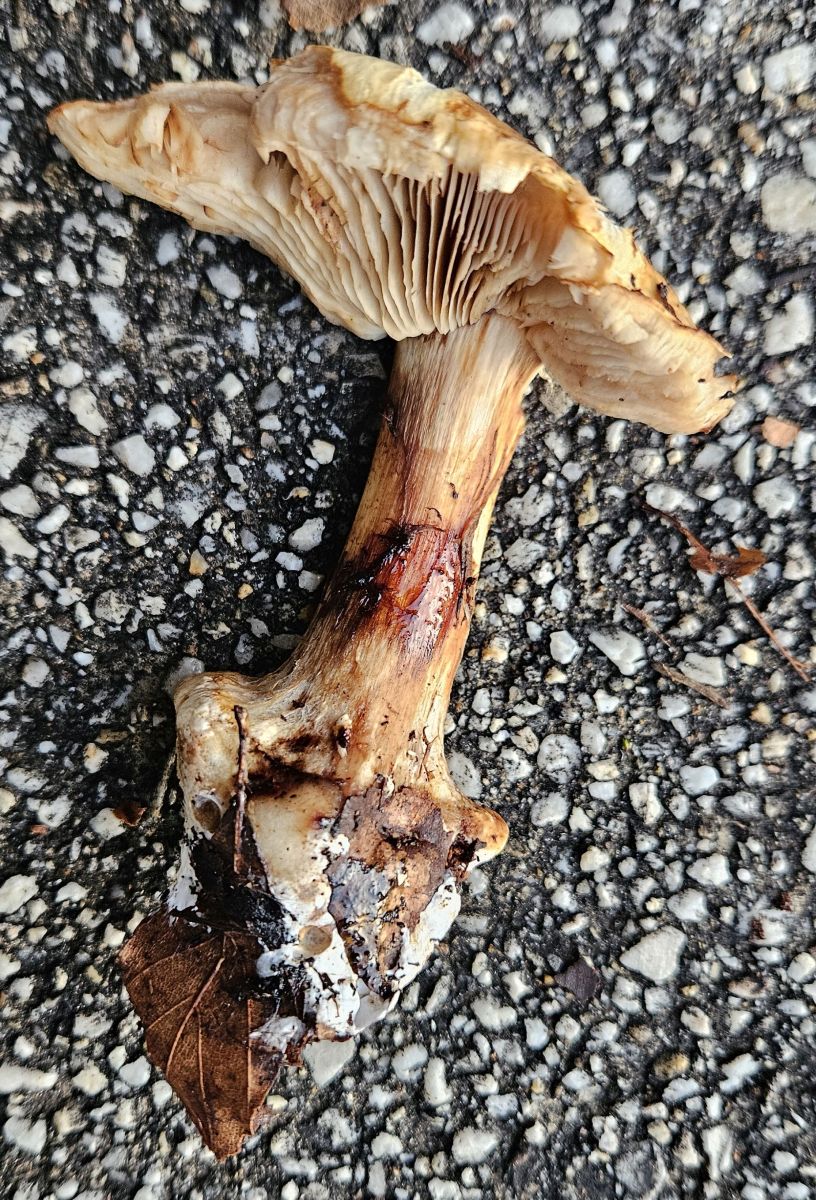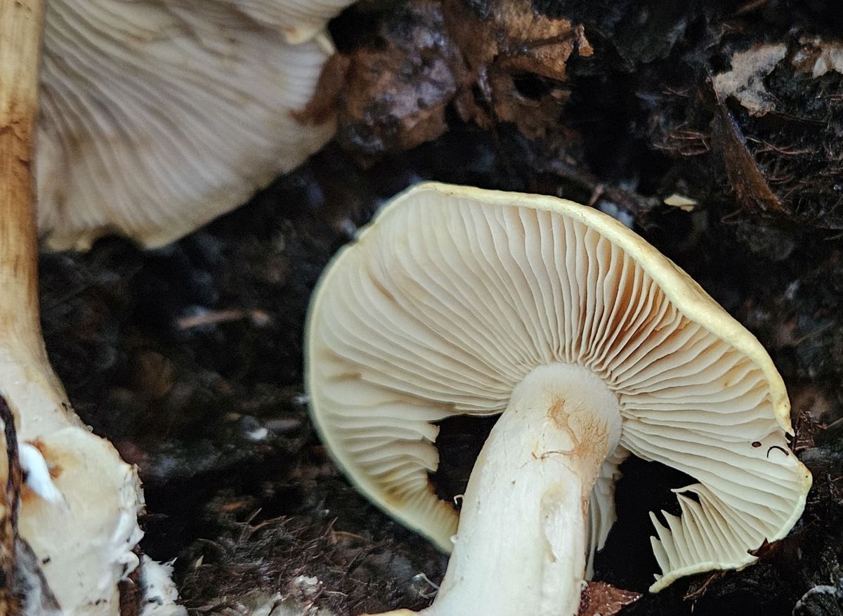 Die Lamellen stehen mäßig dicht und sind im Alter gewellt. Jung hell cremefarben, im Alter werden sie bräunlicher/gräulicher und bekommen dunkle Flecken.