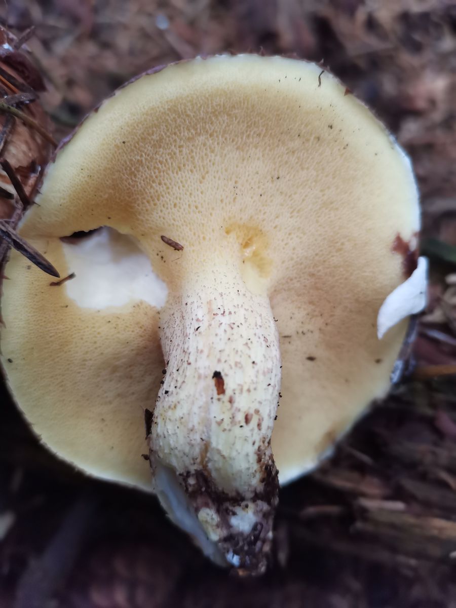 Es sollte ein normaler Butterpilz sein. Weil, ich die Stielbasis nicht sehen kann. Da ist nämlich die Info dran oder drin. Die Stielbasis sollte rosa sein bei einem ringlosen Butterpilz.