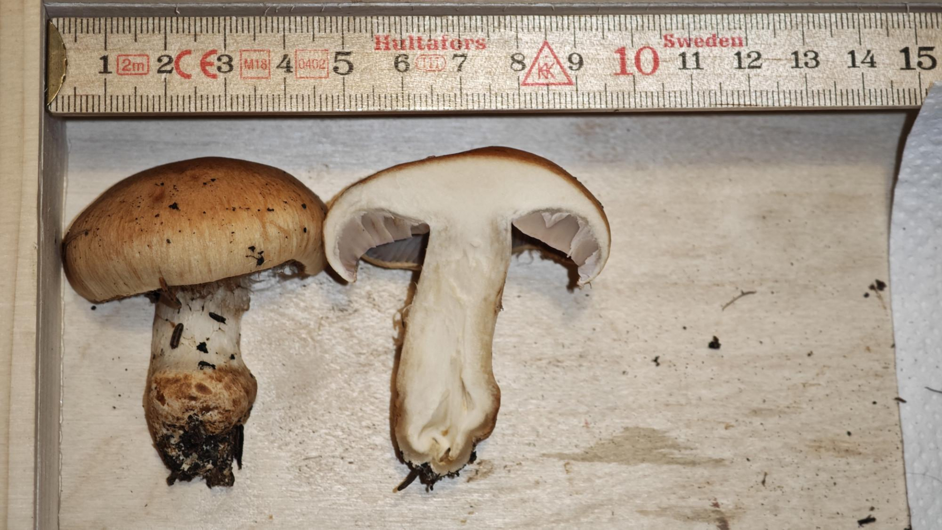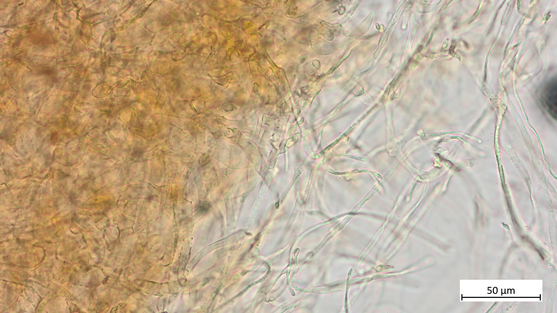 Das passt perfekt zu C. decolorans: die größeren Sporen, keine schön-gelbe KOH-Reaktion im Fleisch, die blasseren Farben....