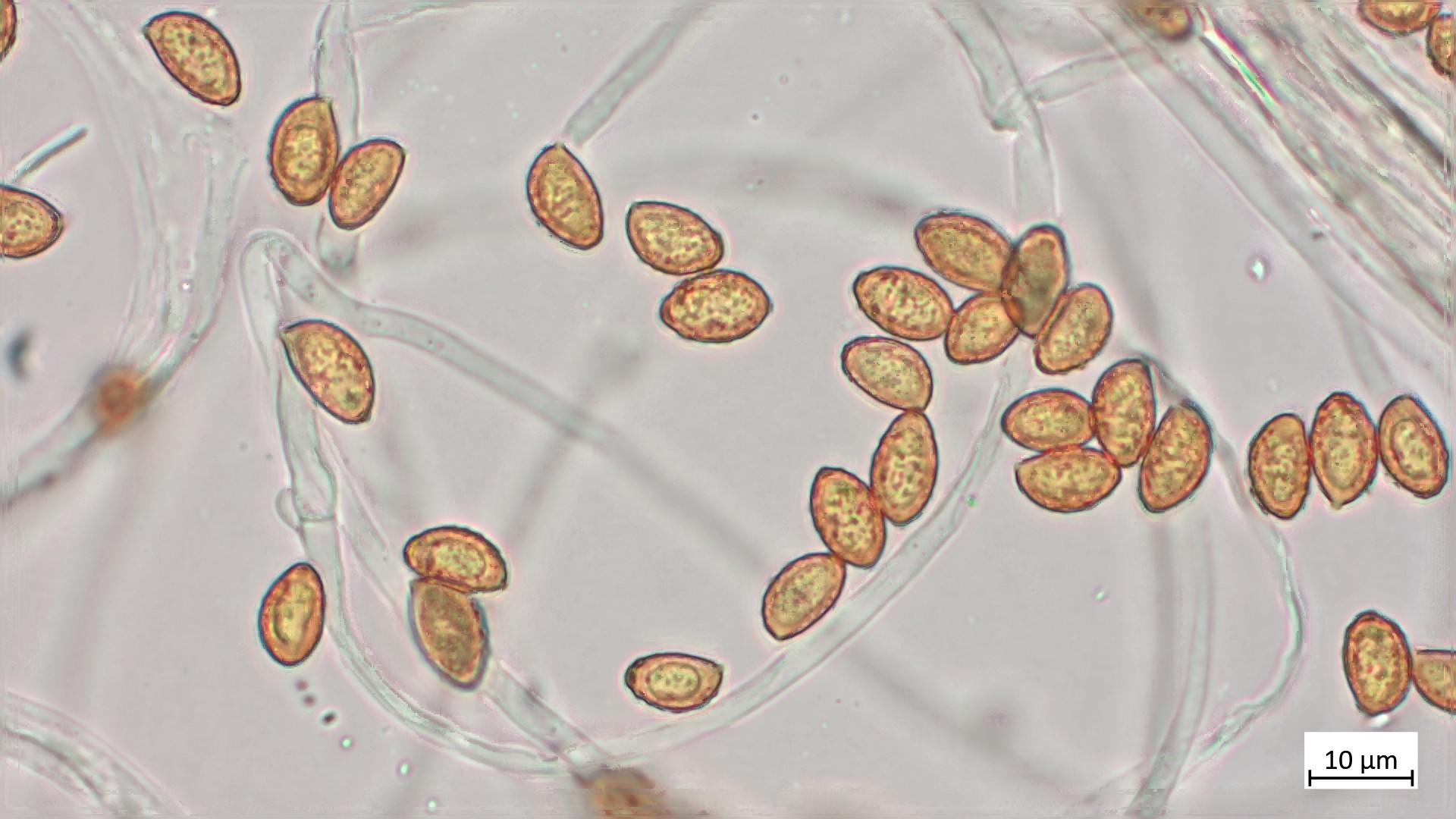 Ich habe 41 Sporen gemessen: 10.5 µm (9.5 - 11.8 µm) x 6.3 (5.9 - 6.8 µm), Q = 1.66 (1.53 - 1.85):