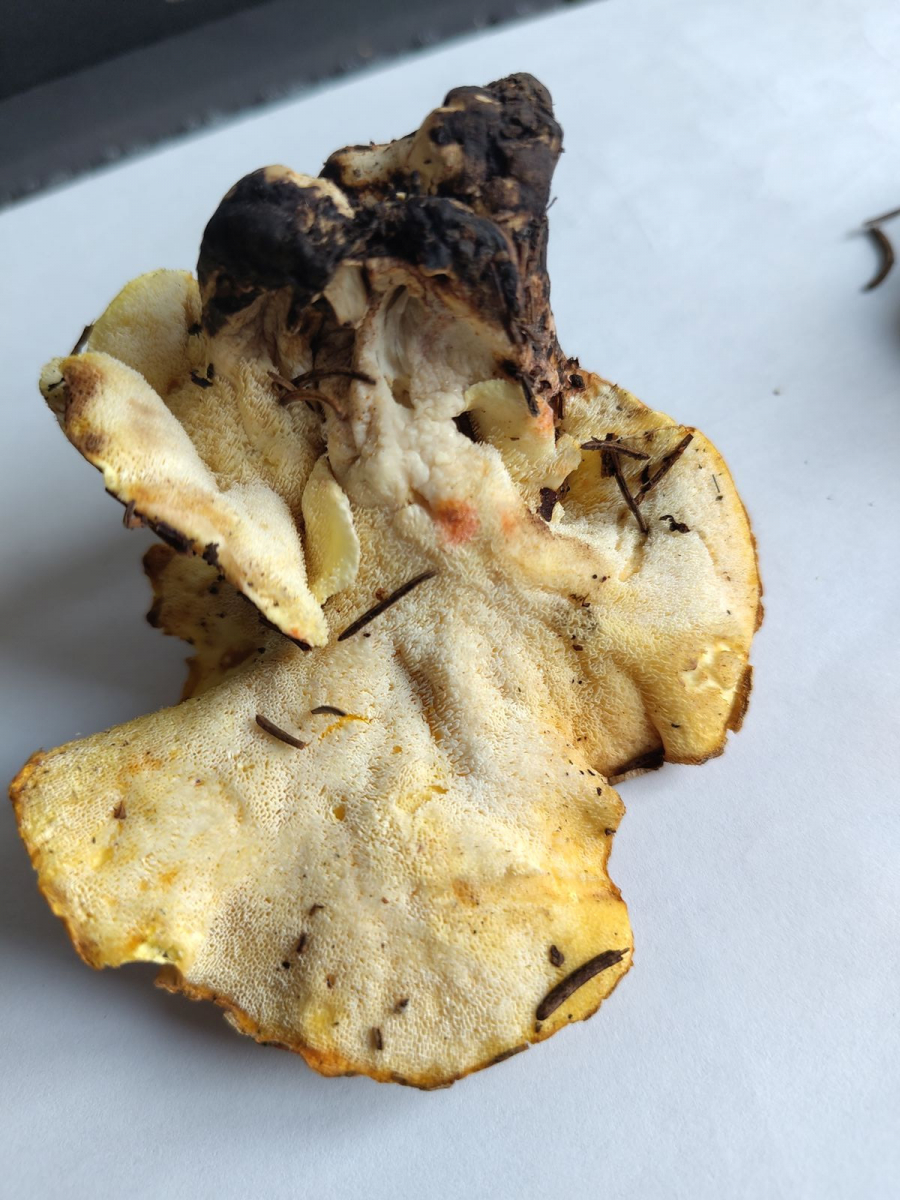 Ich hatte heute frei und hab eine Wanderung in einem Karstgebiet (Schrattenfluh) unternommen. Dabei hab ich nur mal schnell einen Porling mitlaufen lassen (Das darf man in der CH.), um meine Mitwandernde nicht warten zu lassen. Jetzt stelle ich fest, dass es der Zitronengelbe Schafporling sein könnte, welcher in der Schweiz bisher gerade 18mal kartiert wurde. Ist der wirklich so selten? Oder liegt das eher daran, dass er wohl erst 2003 beschrieben wurde (wenn ich das richtig interpretiere: "Albatrellus citrinus Ryman 2003")?