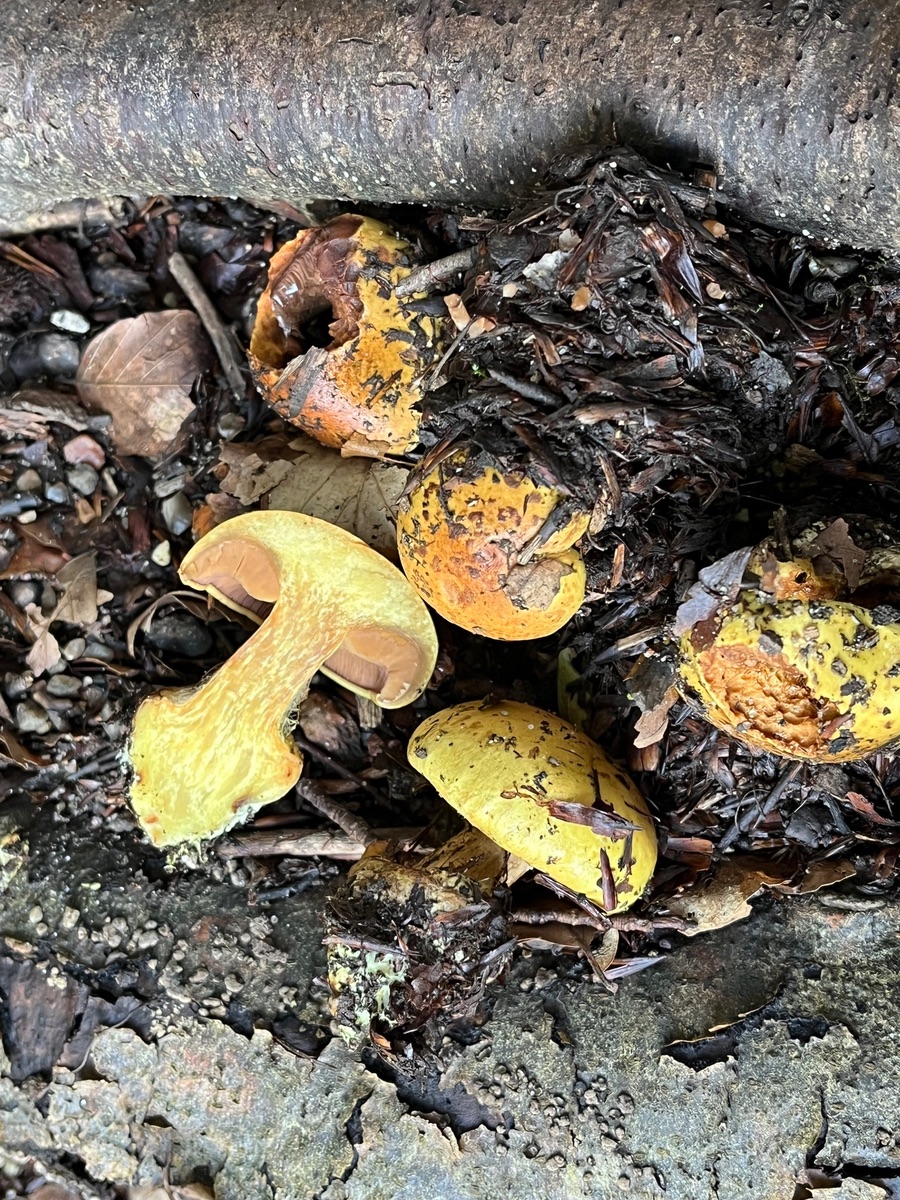 1. Die Art hatte orange-gelbe Huttöne (ähnlich wie C.elegantissimus). Allerdings passt die Farbe der Trama nicht zu C.elegantissimus.