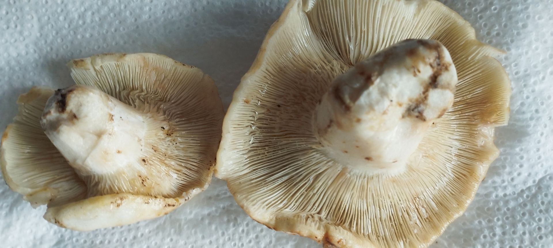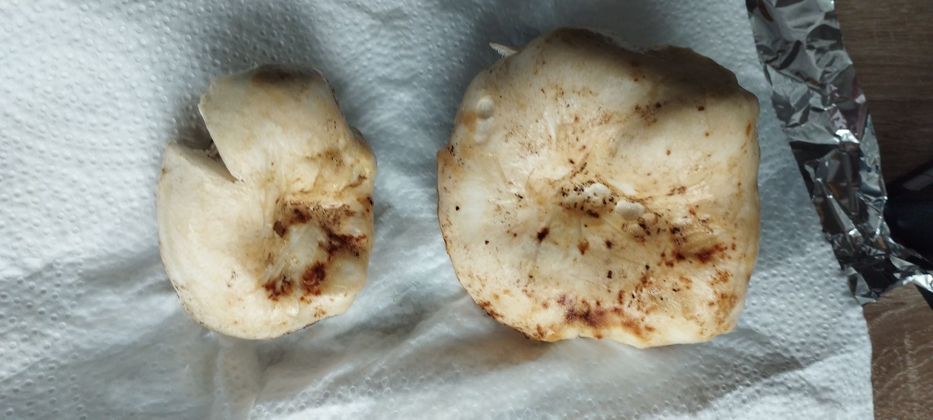 Vergleiche den 2. Pilz doch mal mit den Sprödblättern. Vielleicht kommt dabei ja eine Täublingsart, wie Gemeiner Weißtäubling (Russula delica heraus.