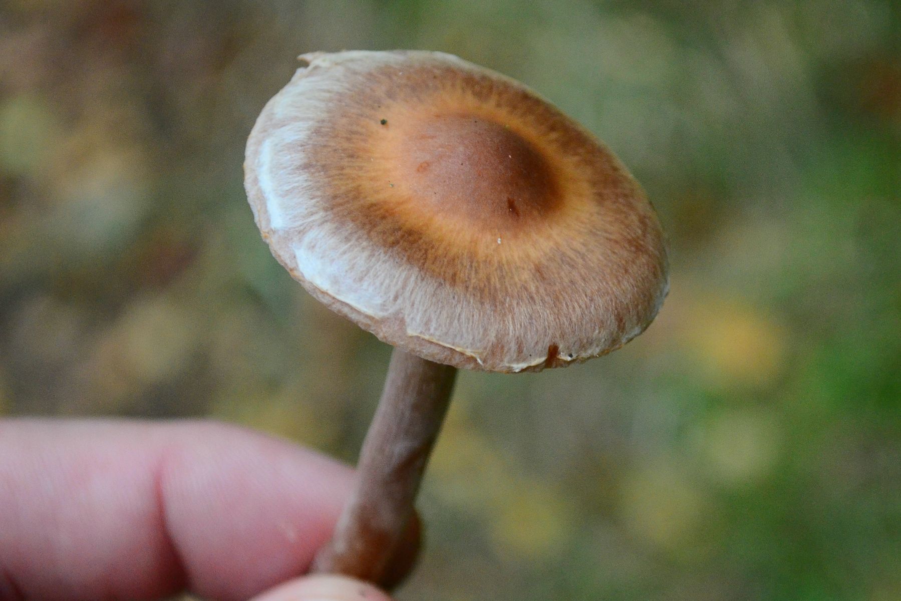 • Der zweite ist deutlich kleiner, Hut 15-30 mm, mit deutlichem spitzem Buckel. die Stielbasis ausgedehnt weißfilzig. Geruch und geschmack unauffällig. Beim TRocknen verfätbt sich der dünne Hutrand dunkelbraun.