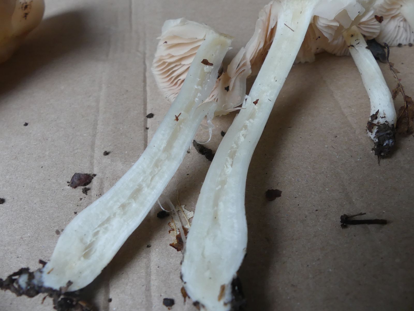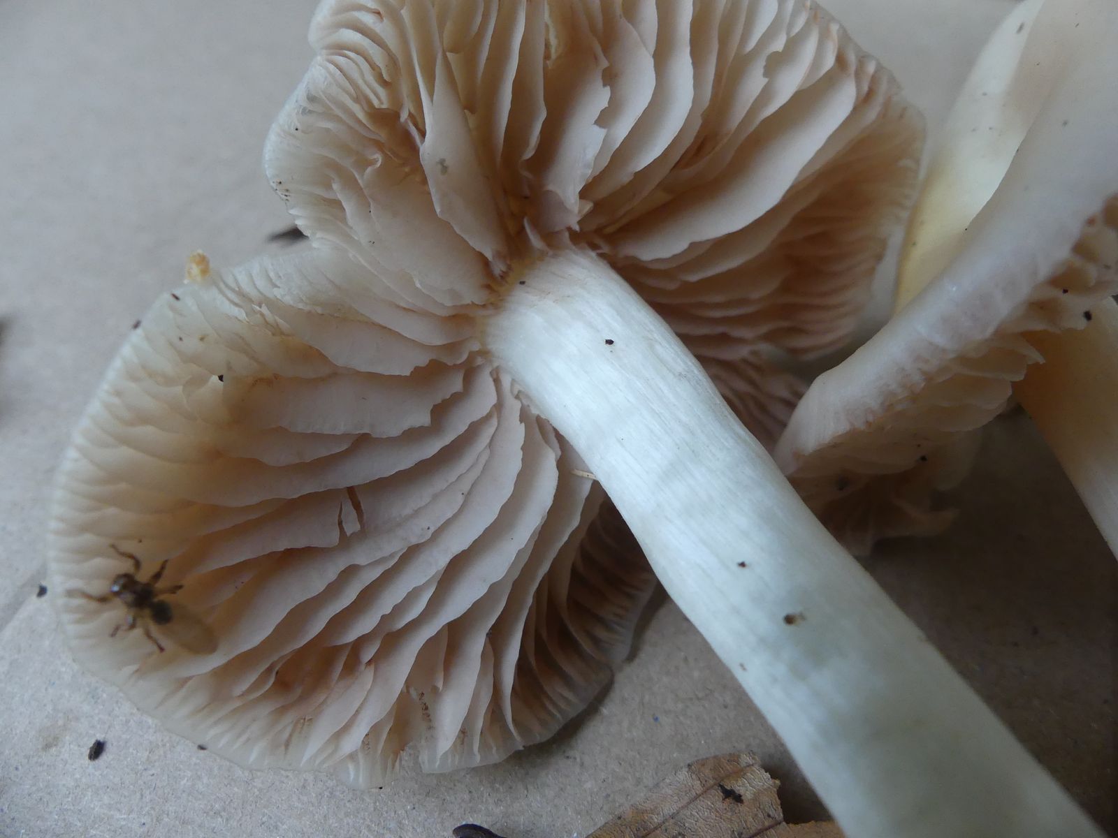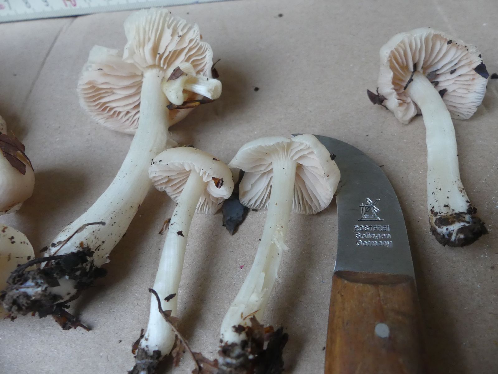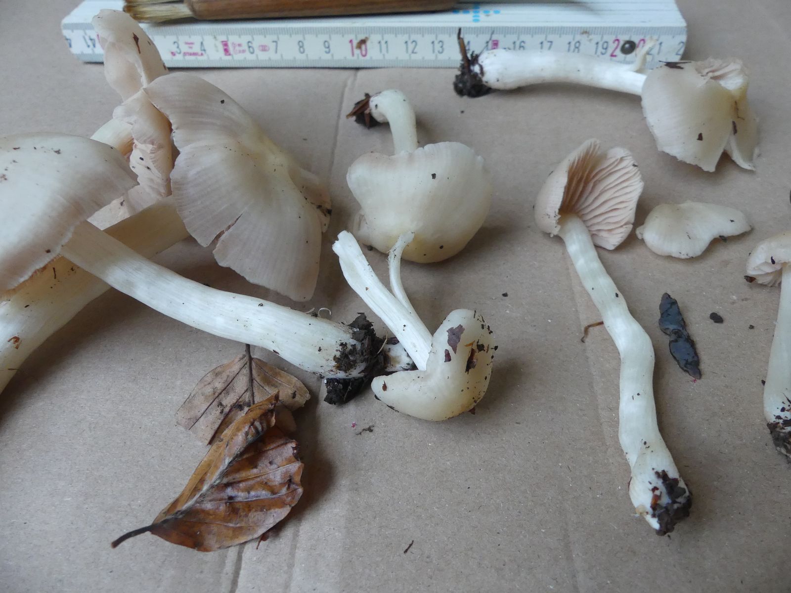 die heutige Runde im Eichen-Buchen-Mischwald auf basischem Lösslehm hat mir eine interessante Entoloma beschert. Eine weiße Entoloma mit leicht rahmgelblicher Hutmitte ist mir noch nicht begegnet. Einen besonderen Geruch konnte ich nicht feststellen.