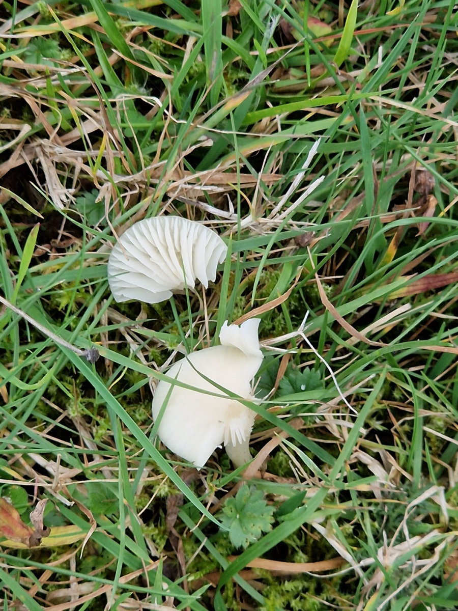 das sieht mit den weit auseinanderstehenden Lamellen aus wie ein Jungfernellerling (Cuphophyllus virgineus), ein mäßig häufiger Pilz auf naturnahen Wiesen und Rasenflächen,