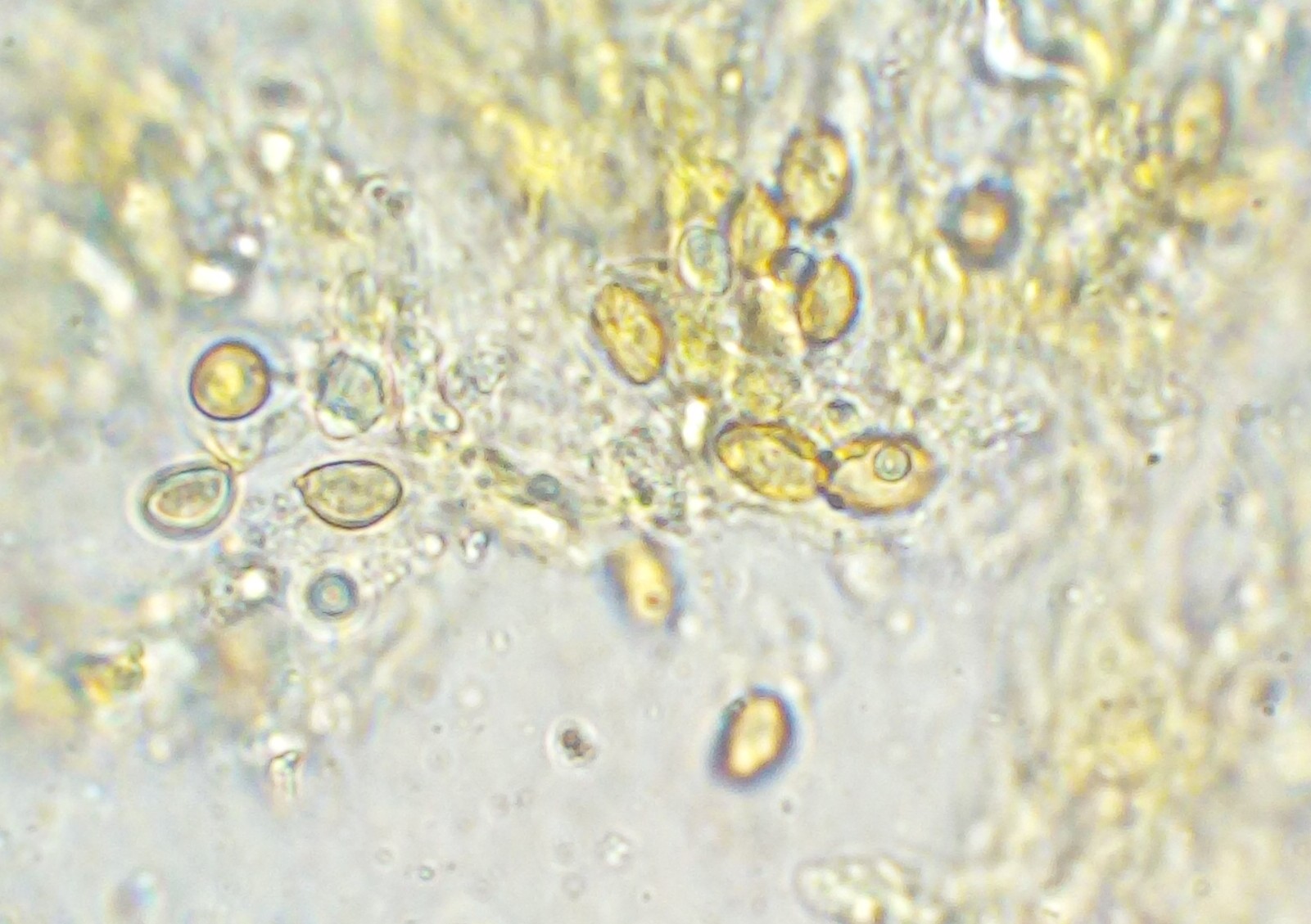 Sporen +/- mandelförmig mit Apikulus, 4,5-7,5*3,5-4,5 µm
