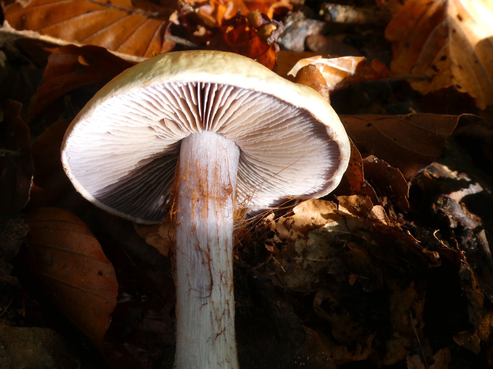 Hutrand ist ein wenig eingerollt, Lamellen ebenfalls einen Hauch ins Violette