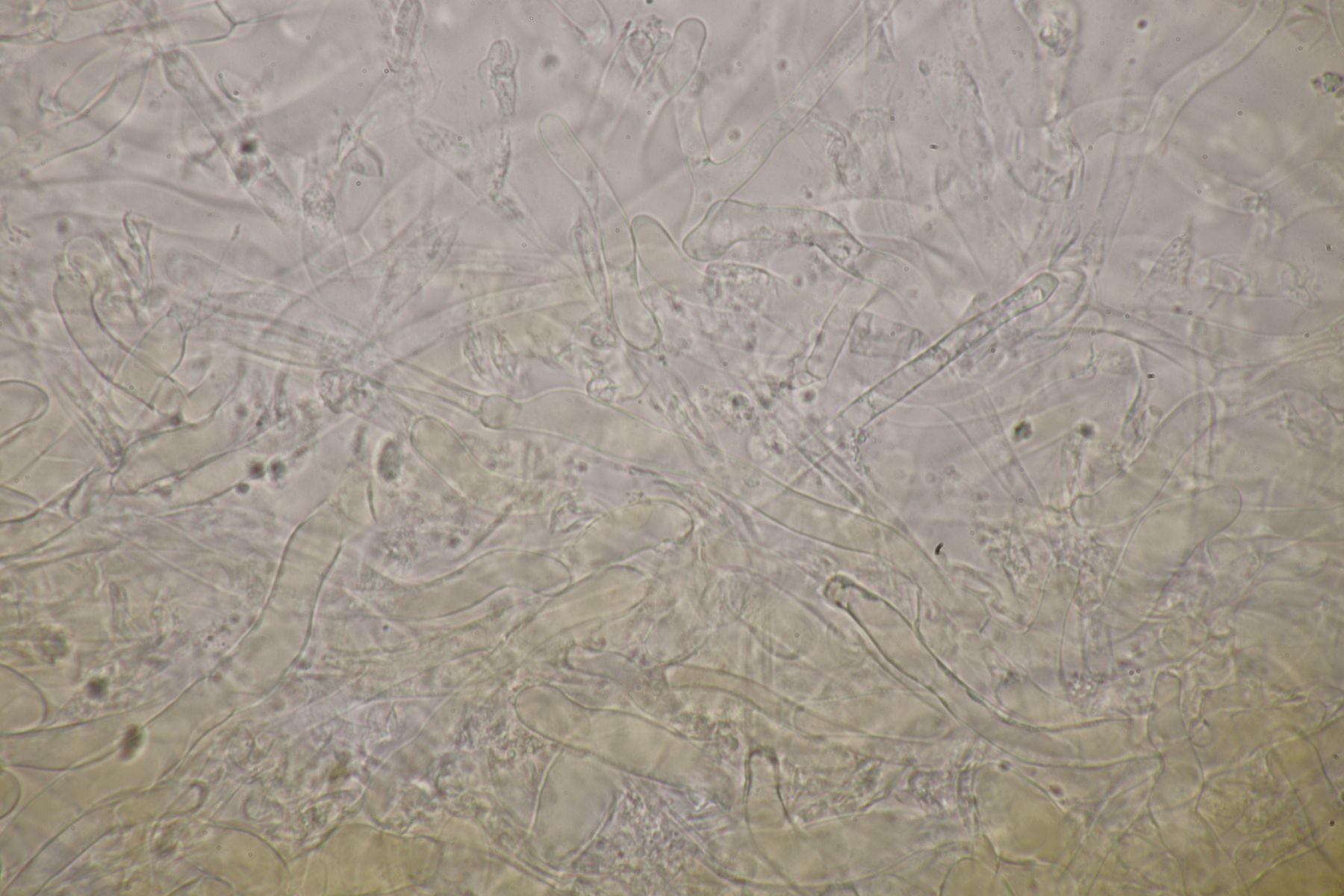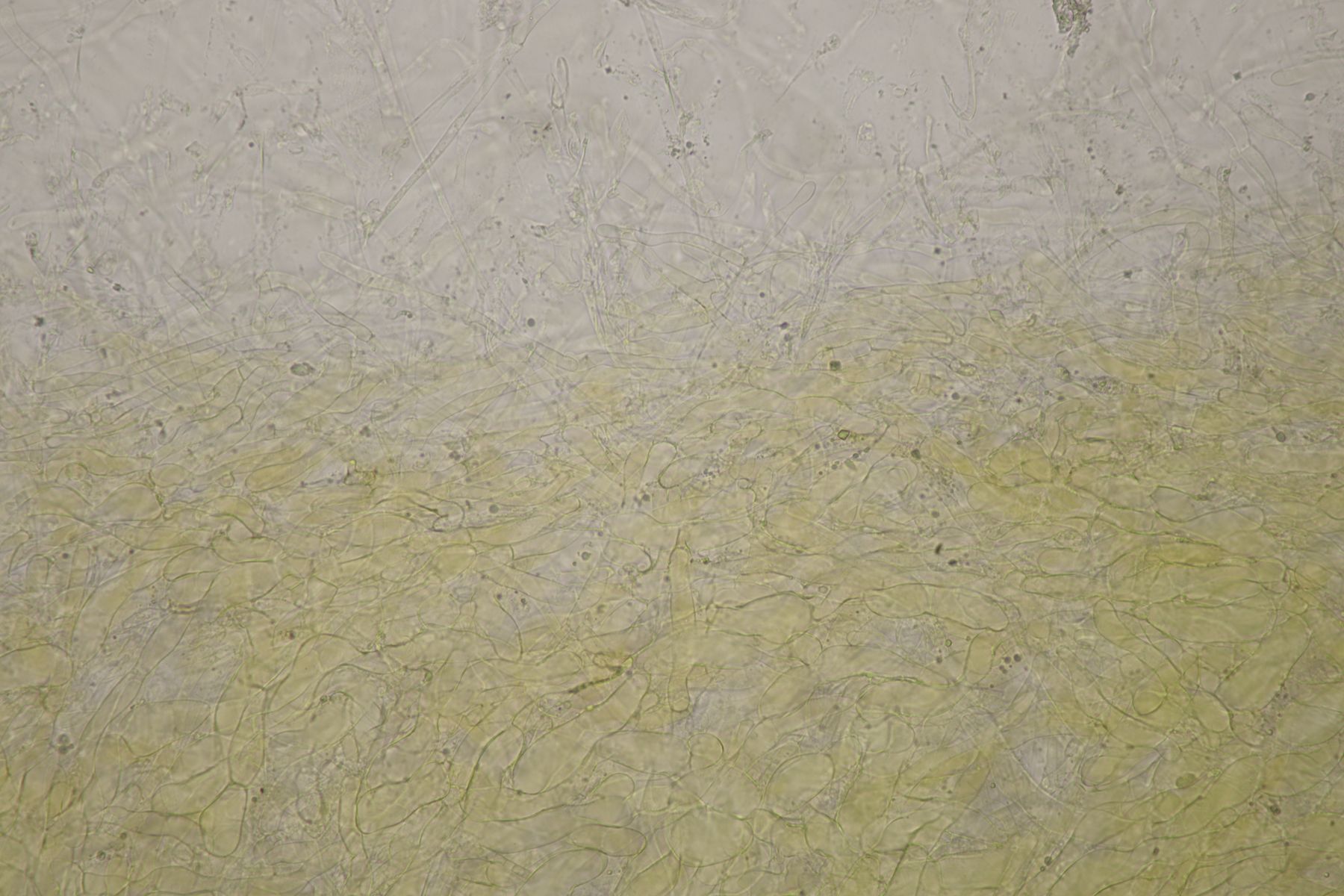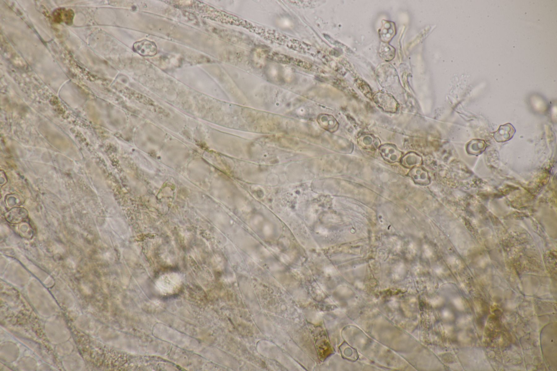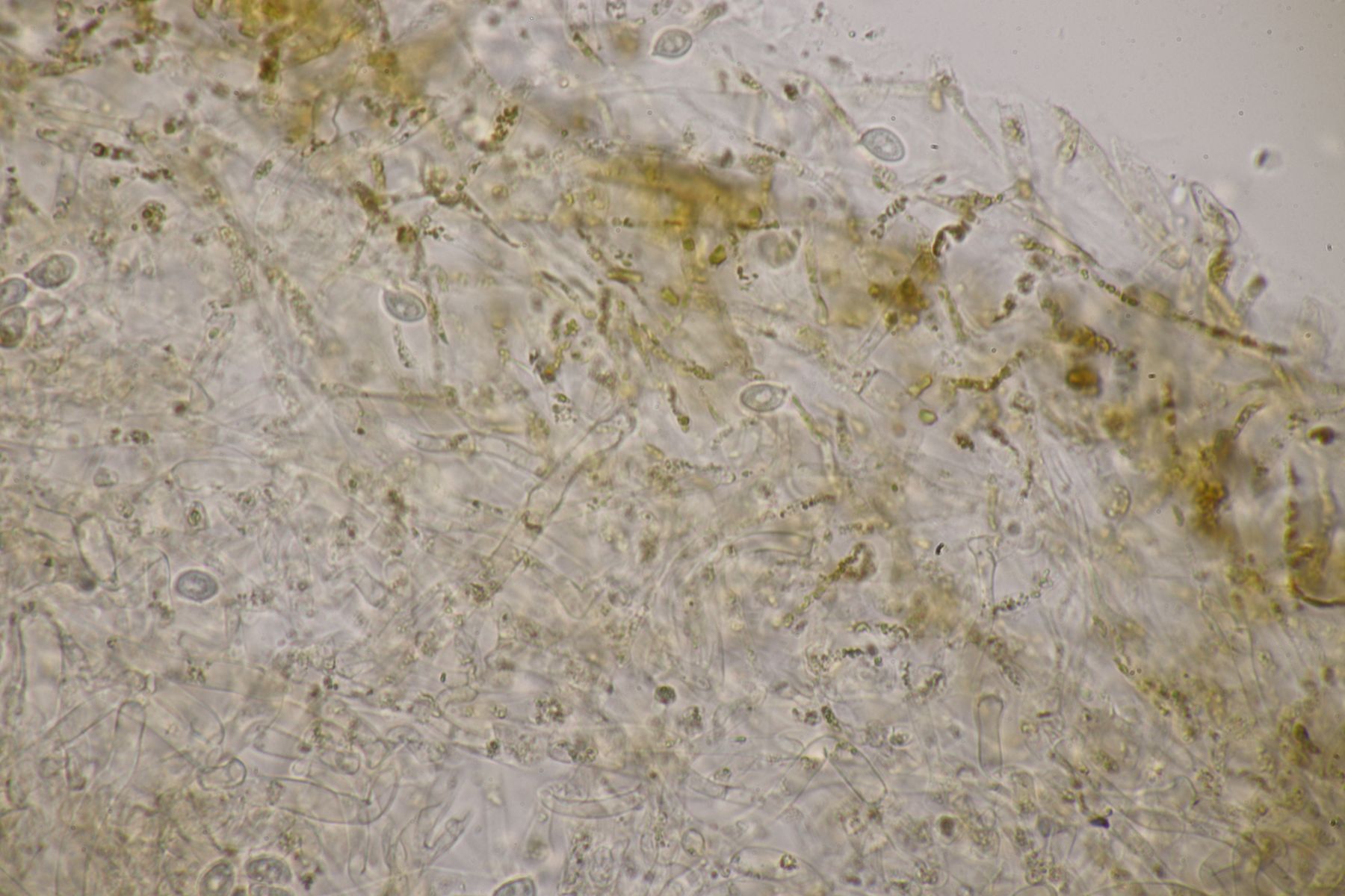 9. Hier stehe ich auf dem Schlauch: Eigentlich sieht das ja schon nach einer Lepista aus, aber die Sporen sind im Abwurf rein weiß, weder amyloid noch dextrinoid und mikroskopisch auch in BWB glatt.