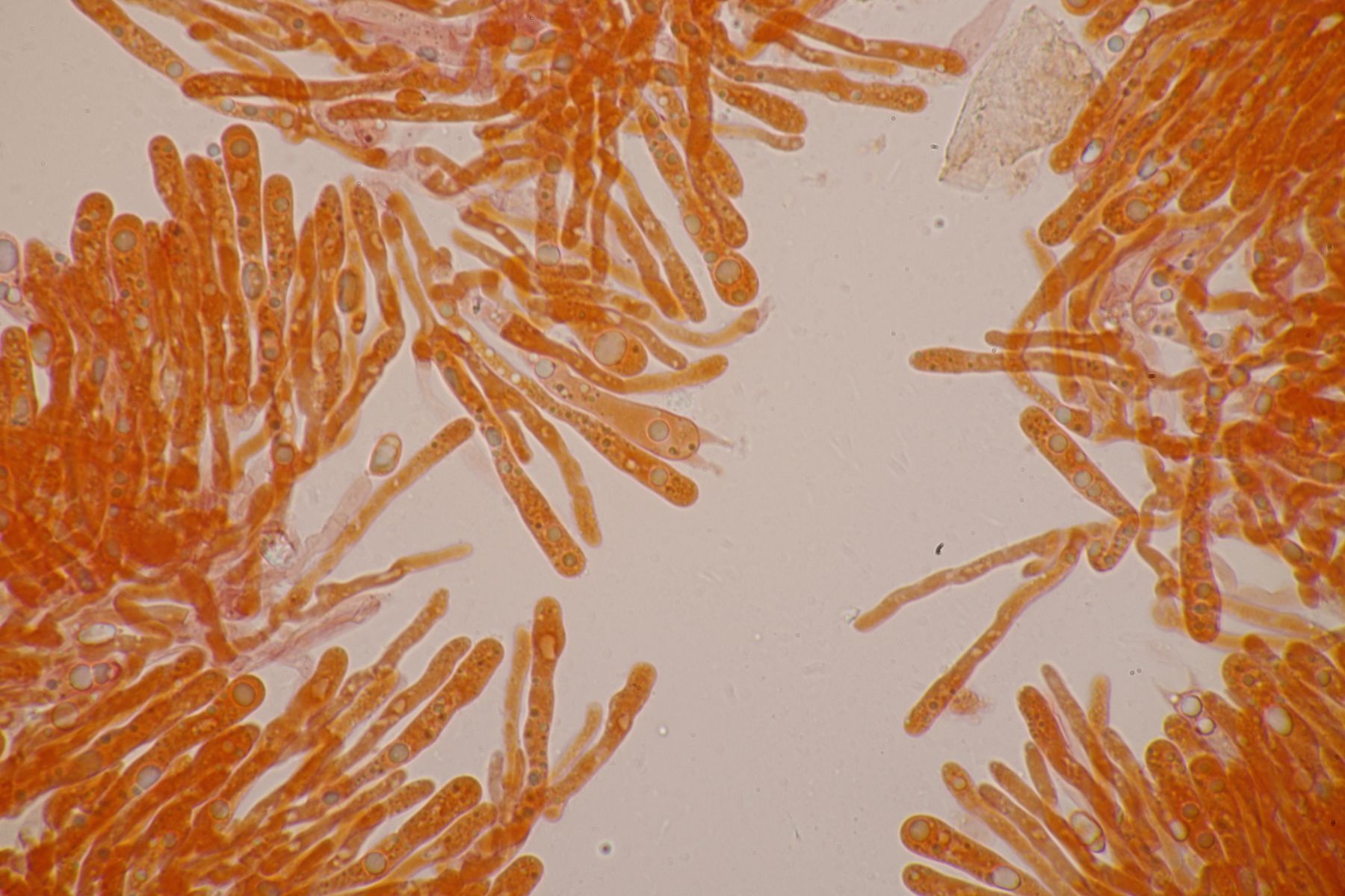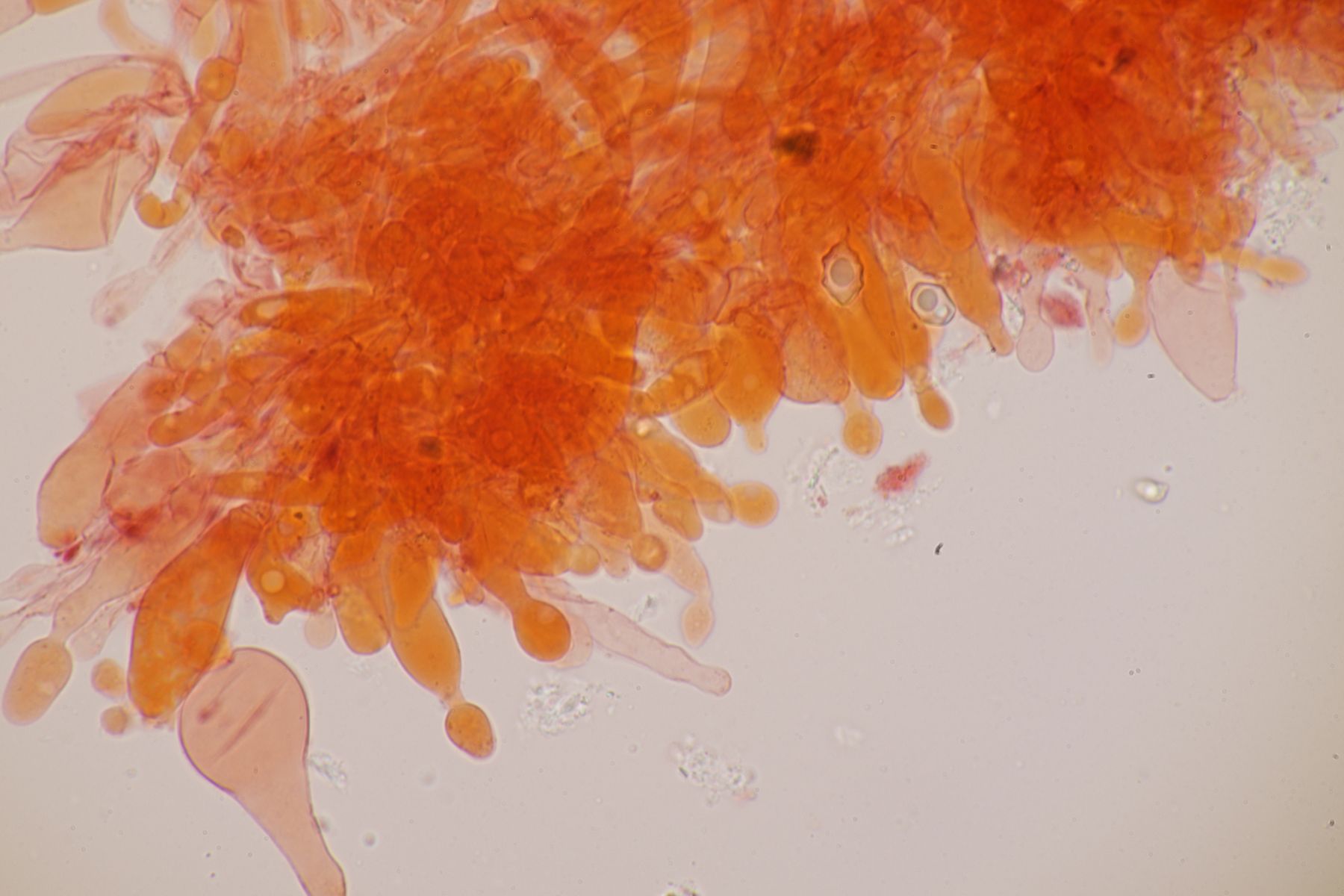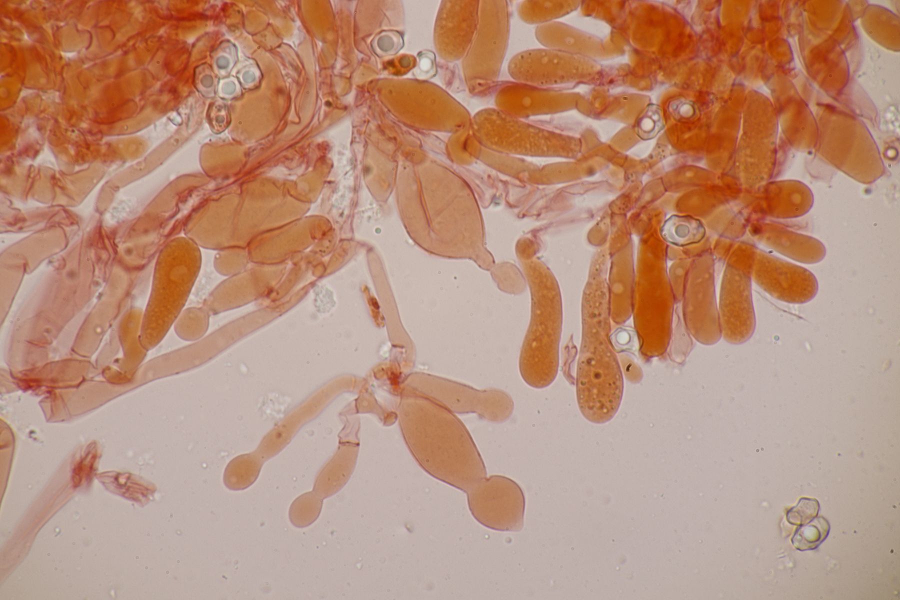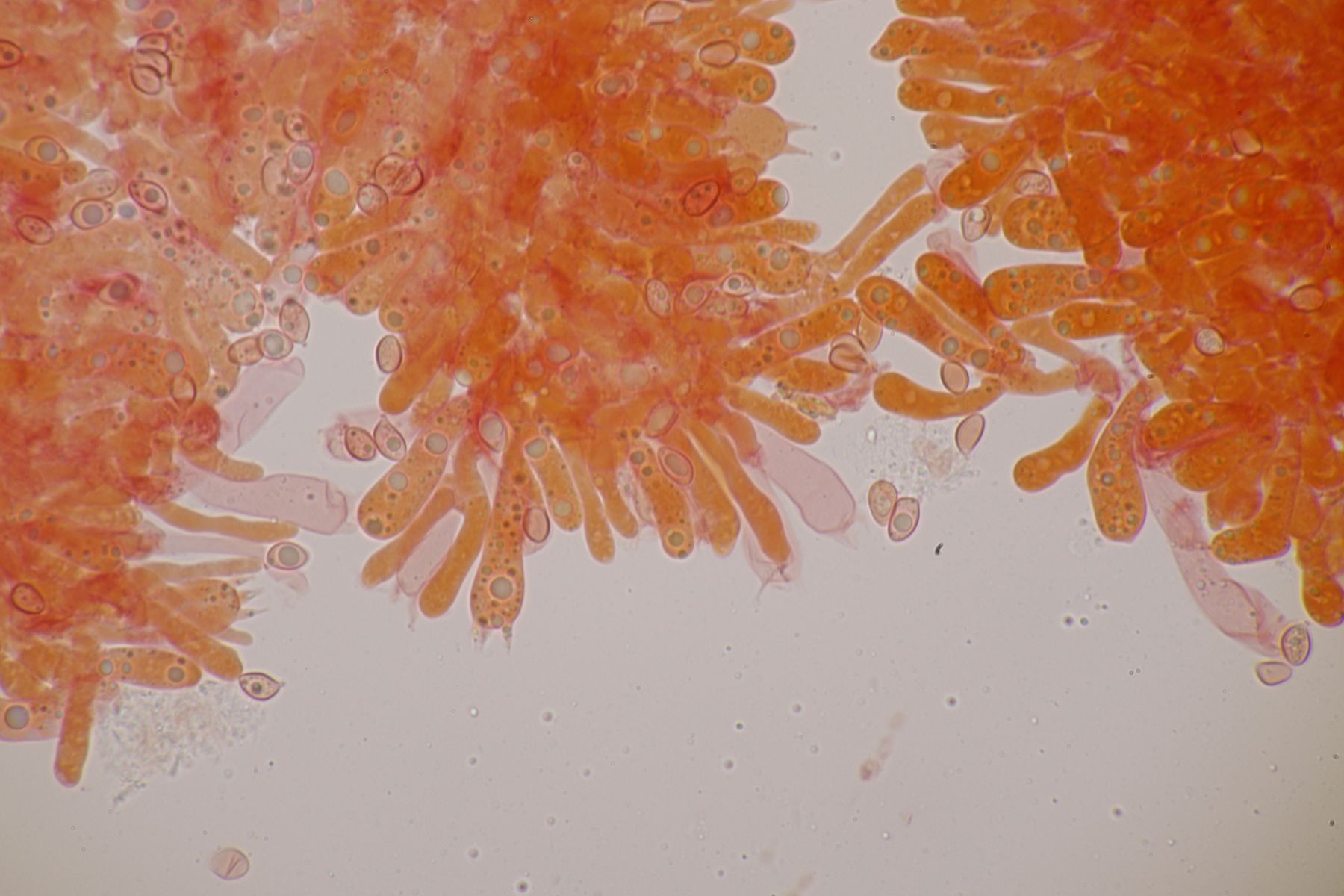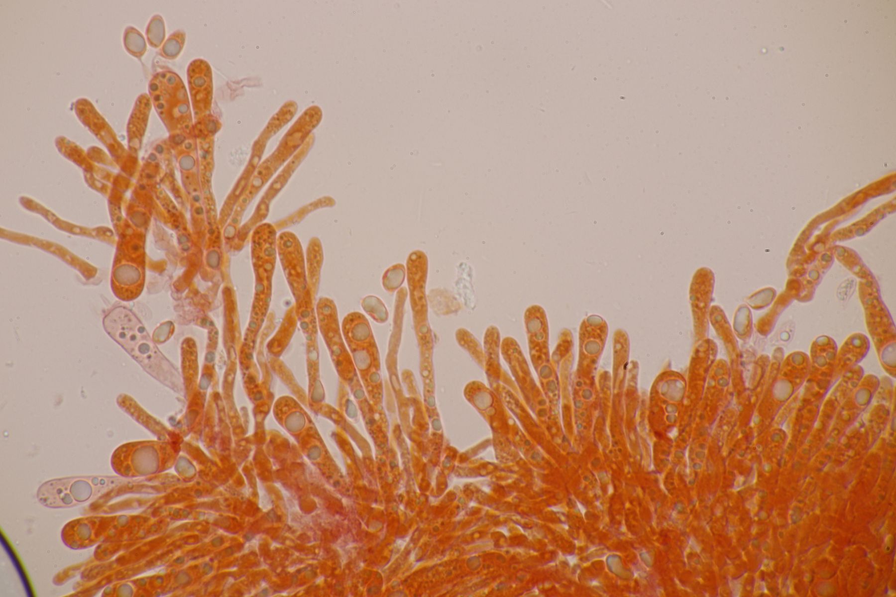 9. Hier stehe ich auf dem Schlauch: Eigentlich sieht das ja schon nach einer Lepista aus, aber die Sporen sind im Abwurf rein weiß, weder amyloid noch dextrinoid und mikroskopisch auch in BWB glatt.