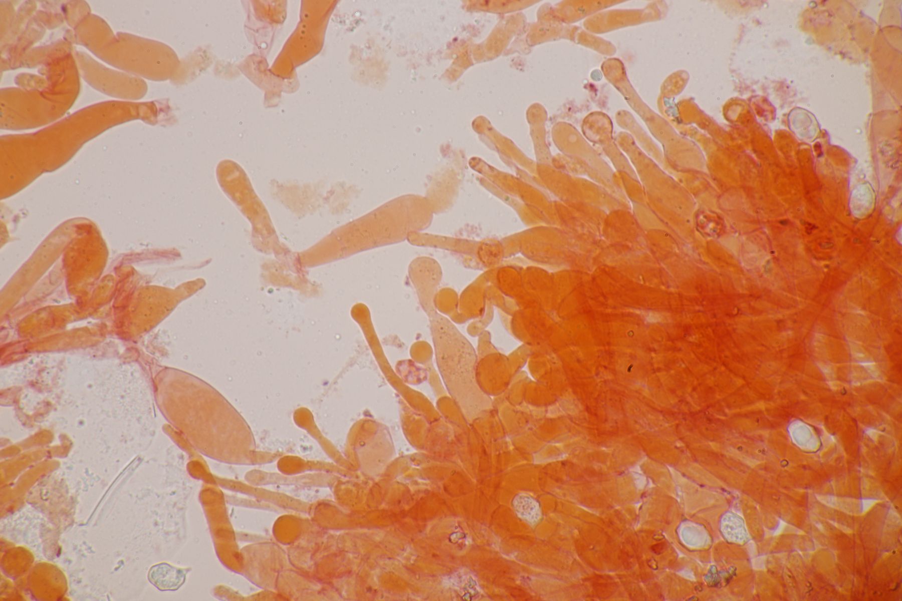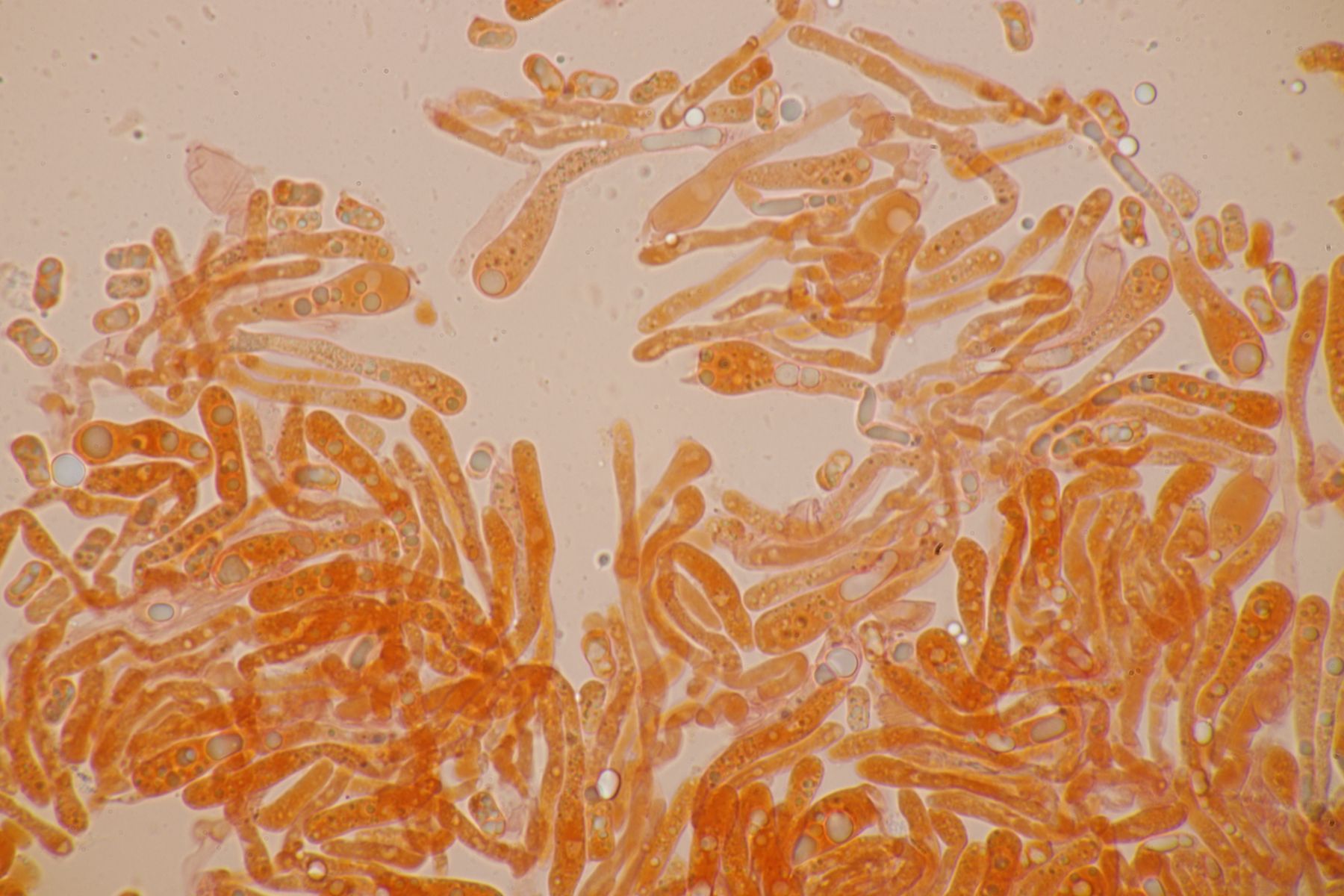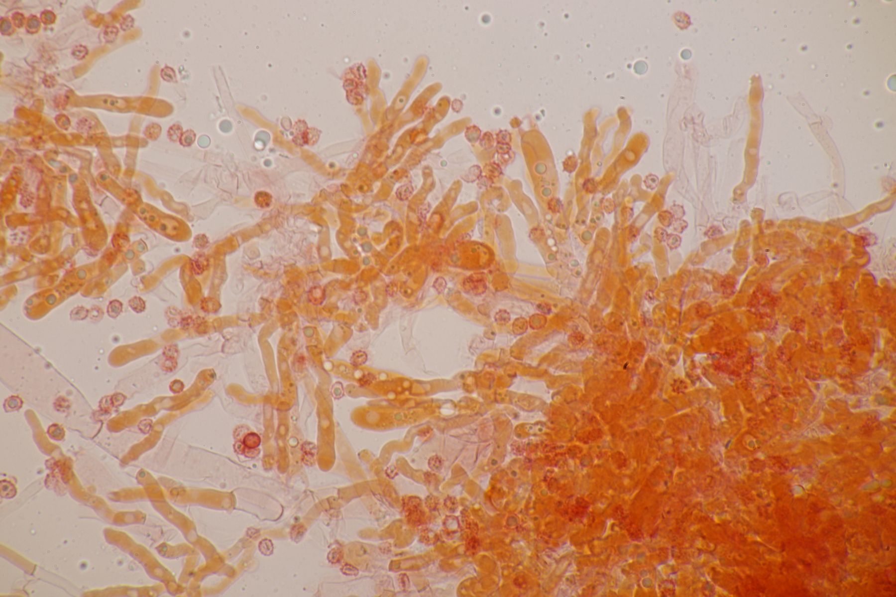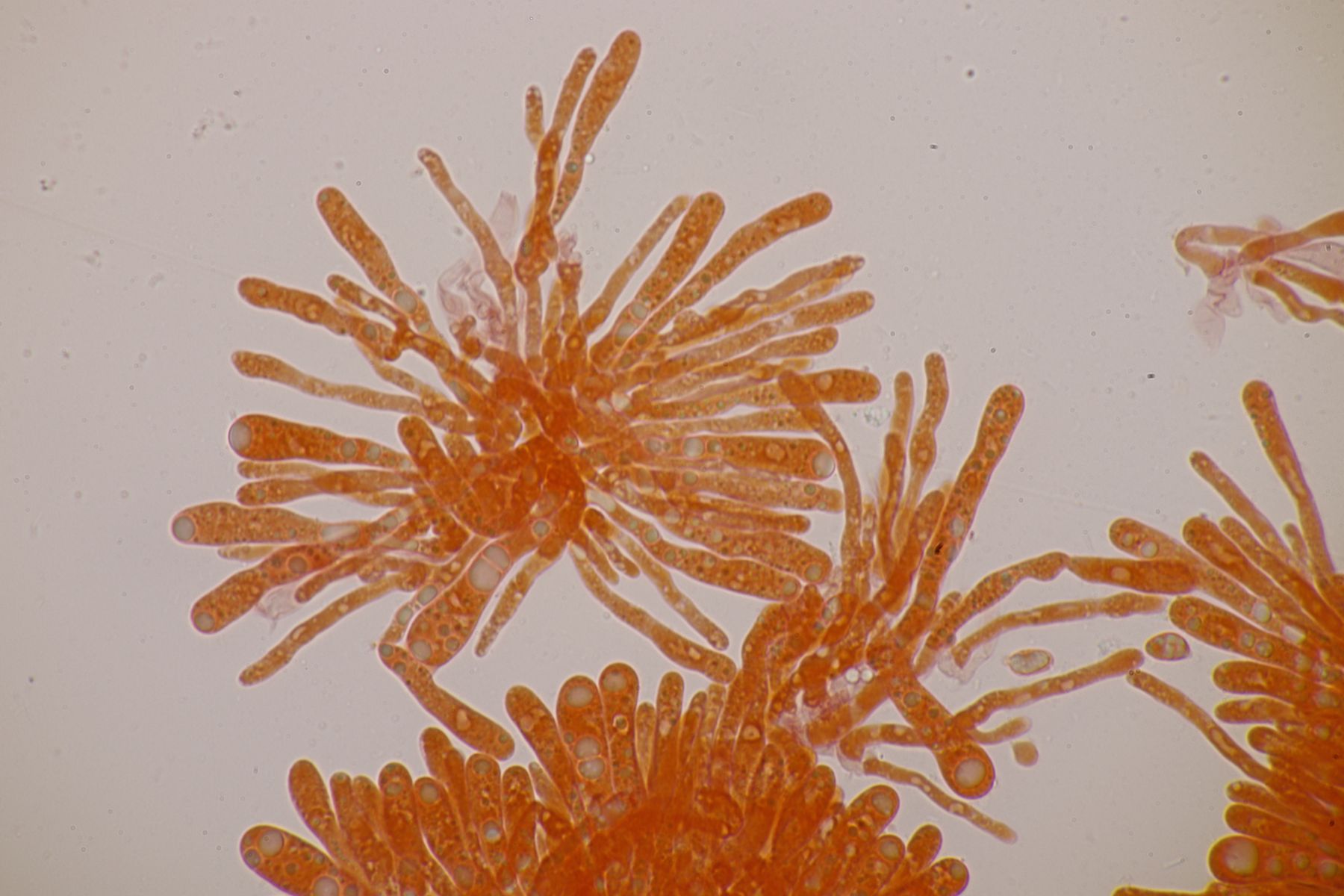 9. Hier stehe ich auf dem Schlauch: Eigentlich sieht das ja schon nach einer Lepista aus, aber die Sporen sind im Abwurf rein weiß, weder amyloid noch dextrinoid und mikroskopisch auch in BWB glatt.