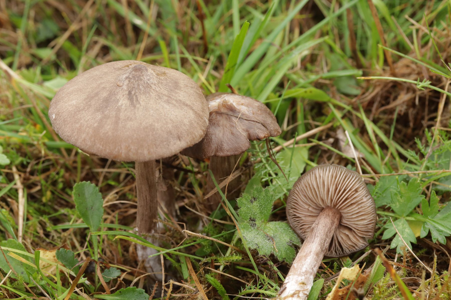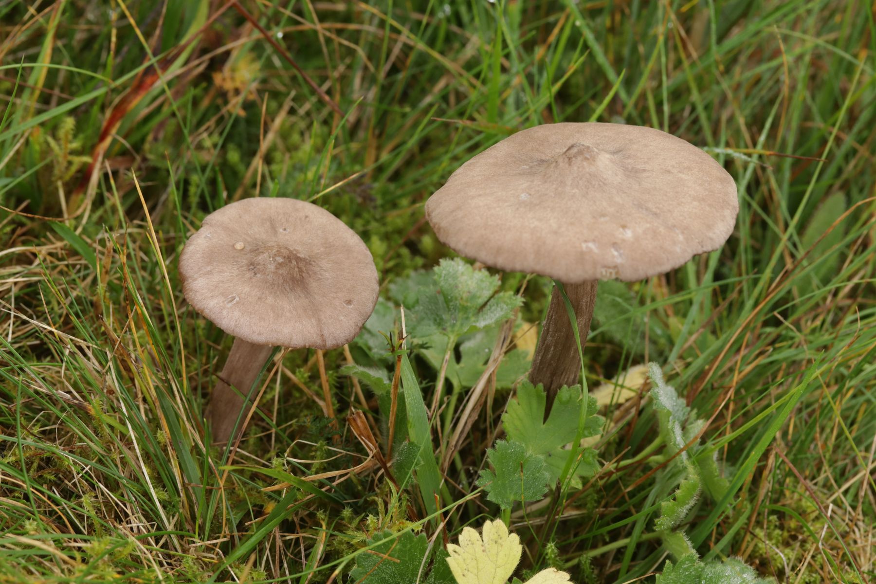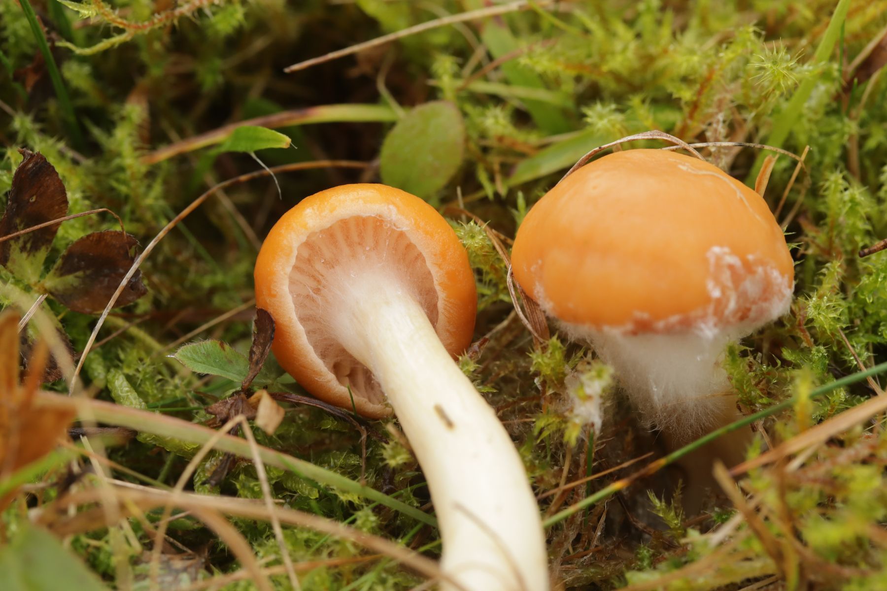 21. Irgendwie wirken mir diese Teile viel zu kräftig und stämmig für Cuphophyllus virgineus und auch der spitz gebuckelte Hut will nicht so recht passen. Kann das Cuphophyllus fornicatus sein?