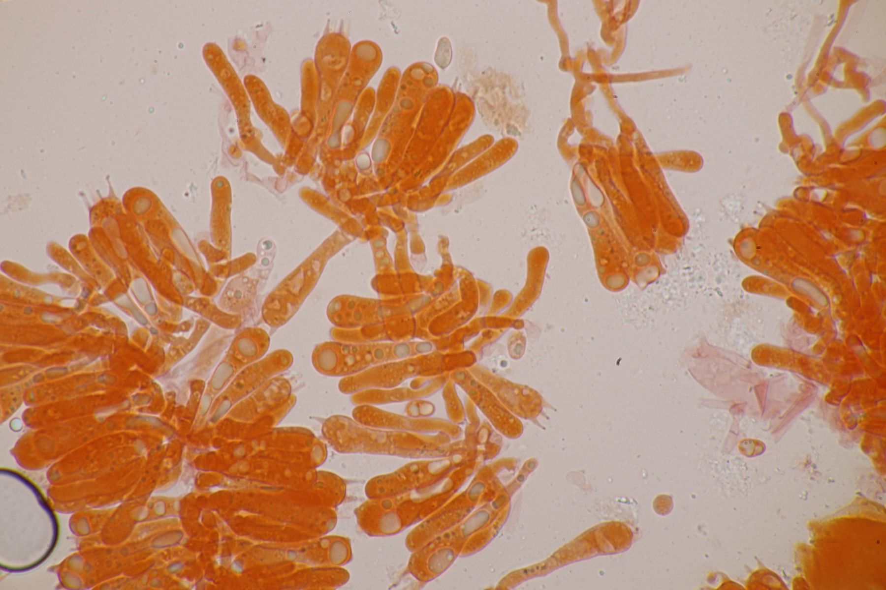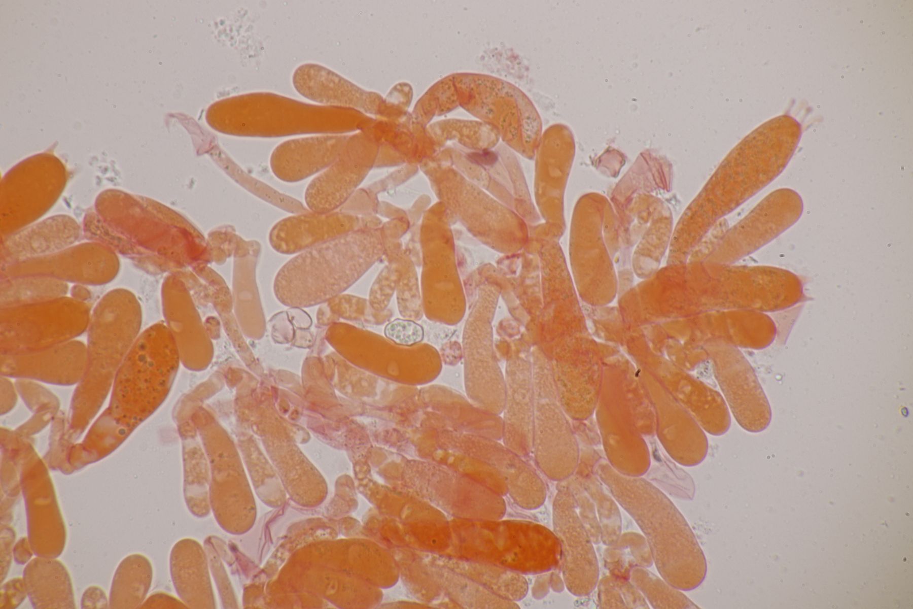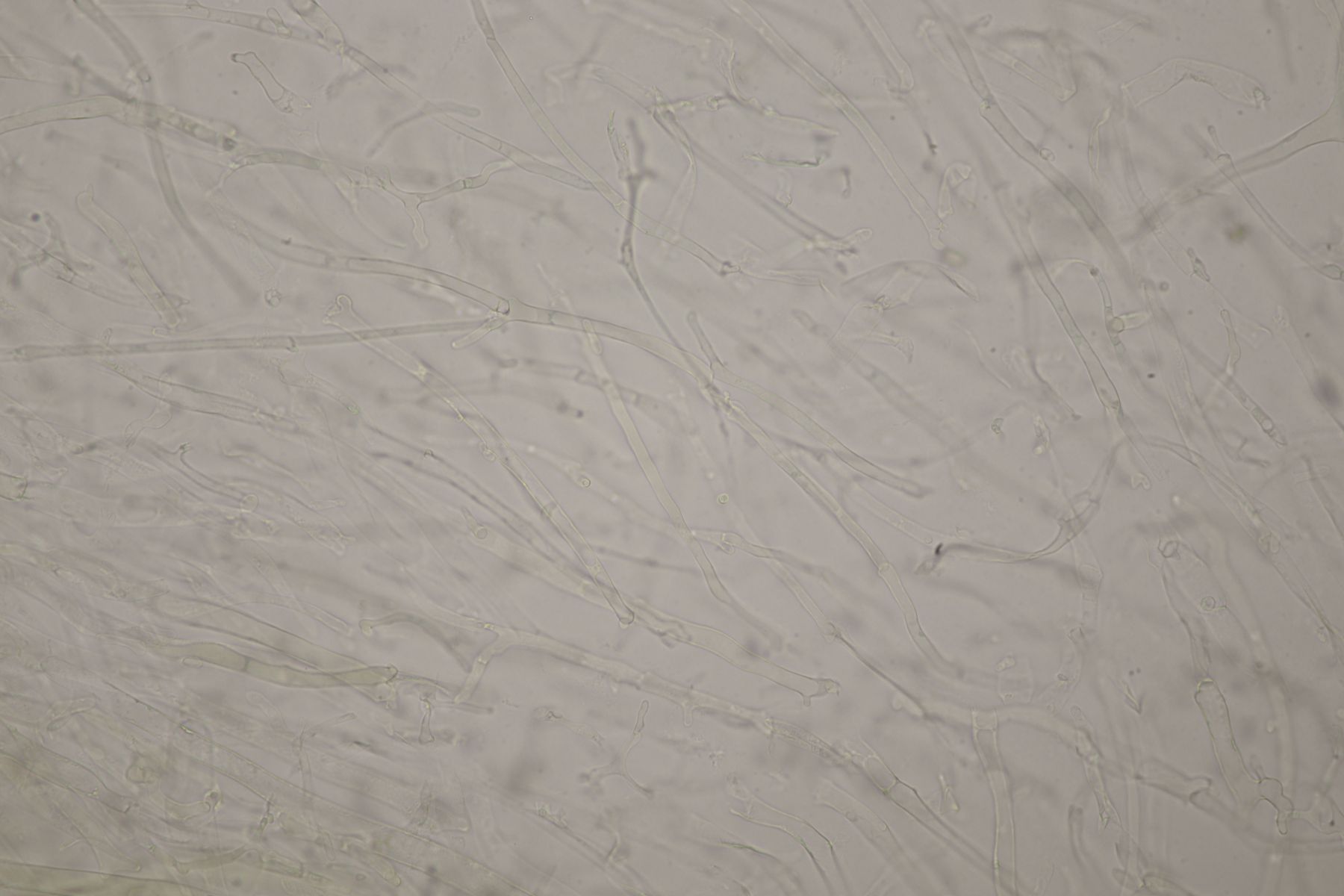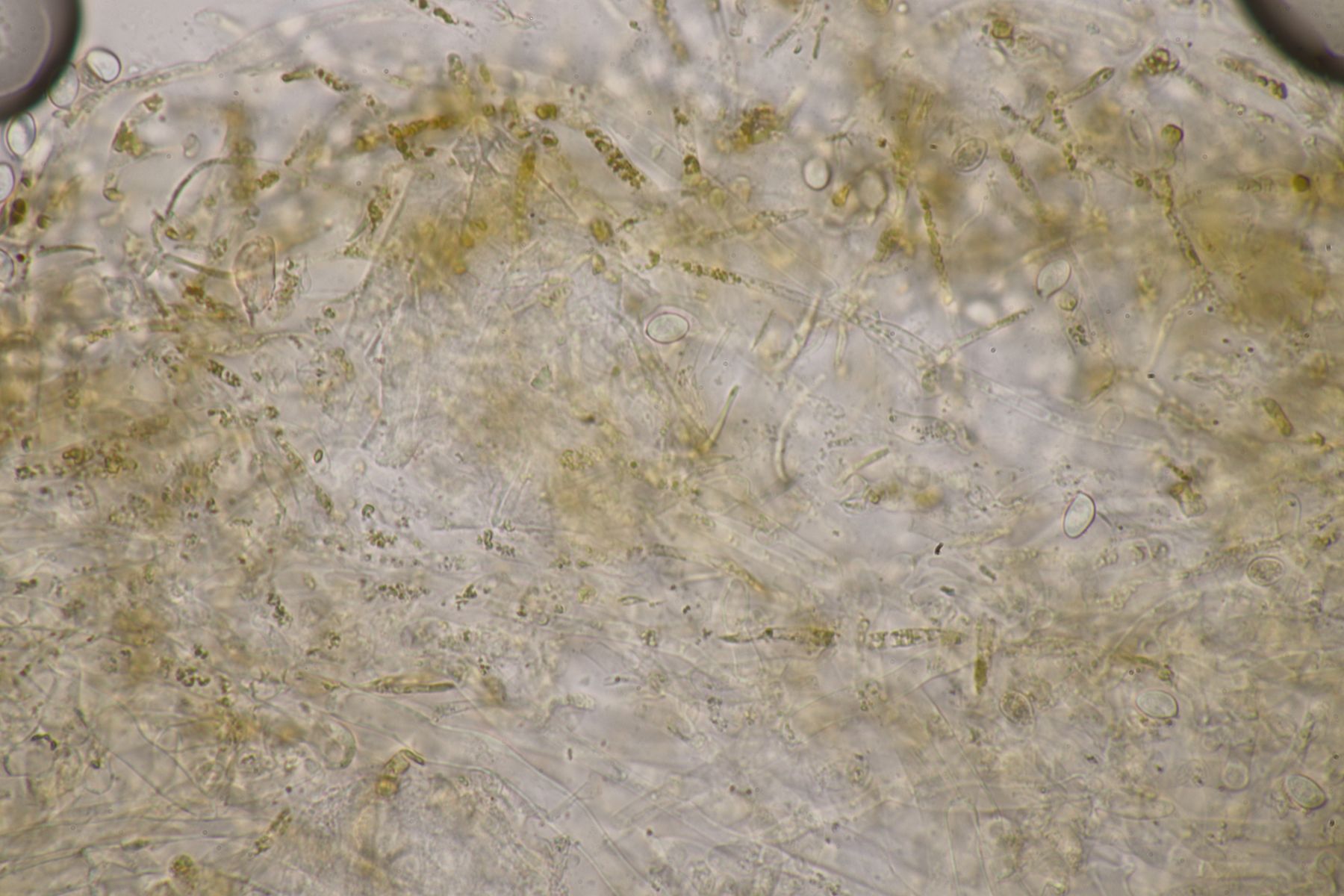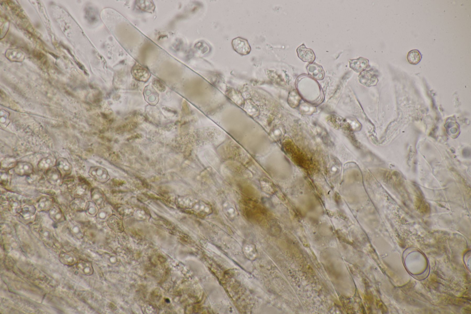 9. Hier stehe ich auf dem Schlauch: Eigentlich sieht das ja schon nach einer Lepista aus, aber die Sporen sind im Abwurf rein weiß, weder amyloid noch dextrinoid und mikroskopisch auch in BWB glatt.