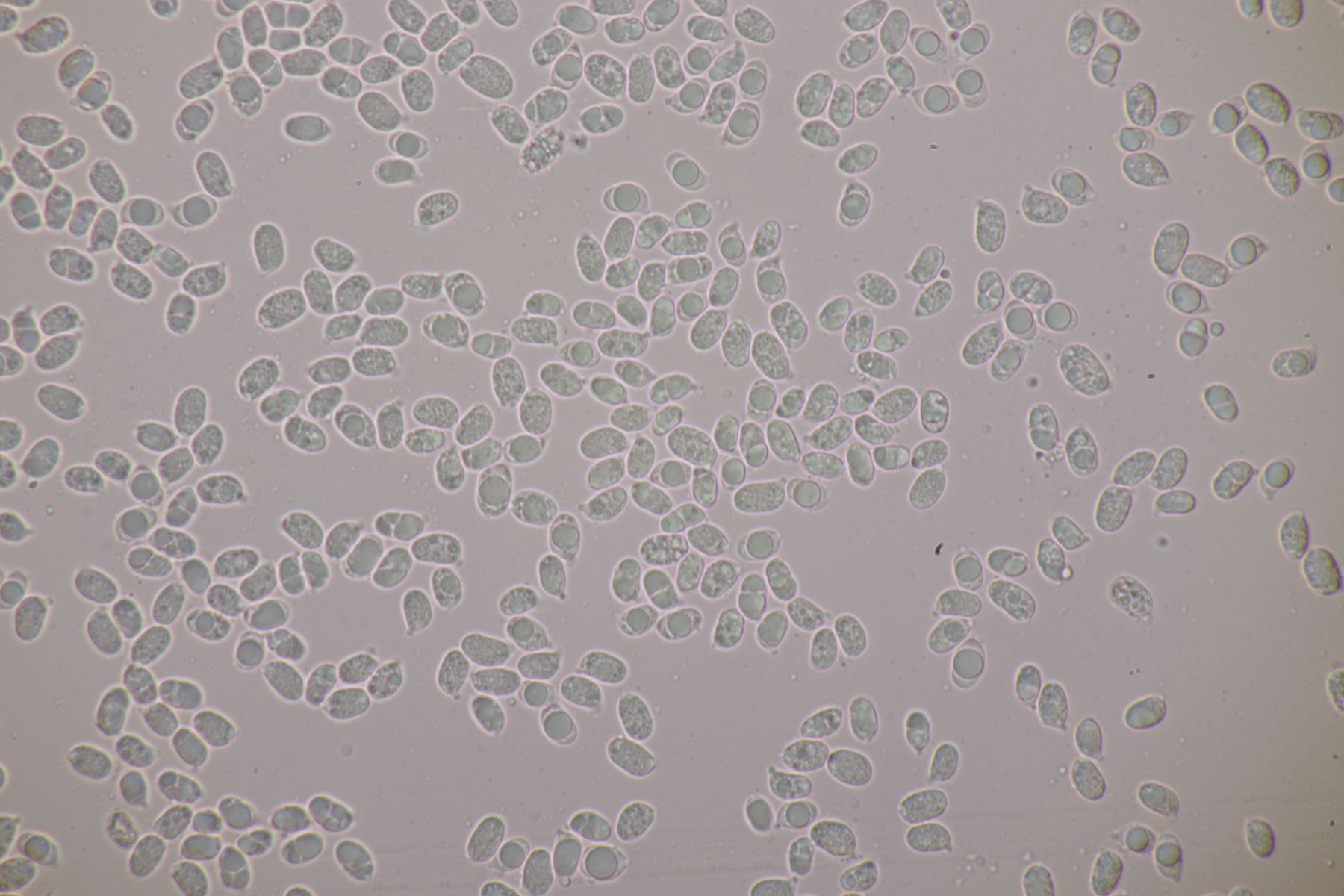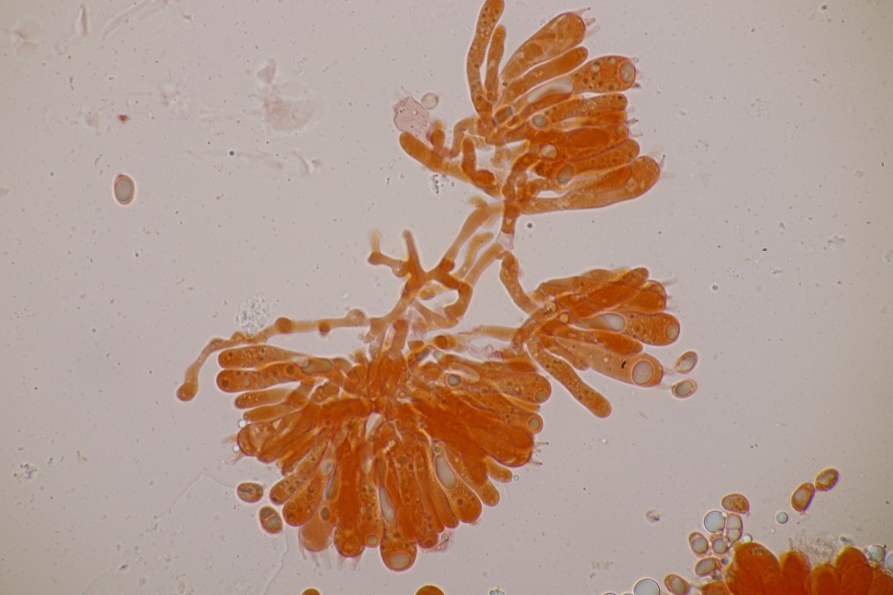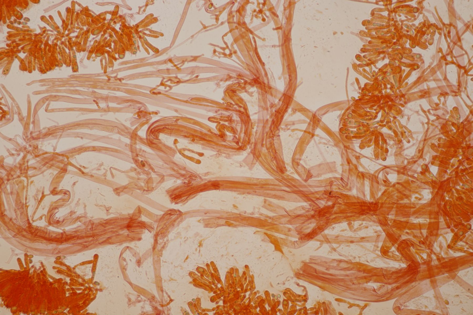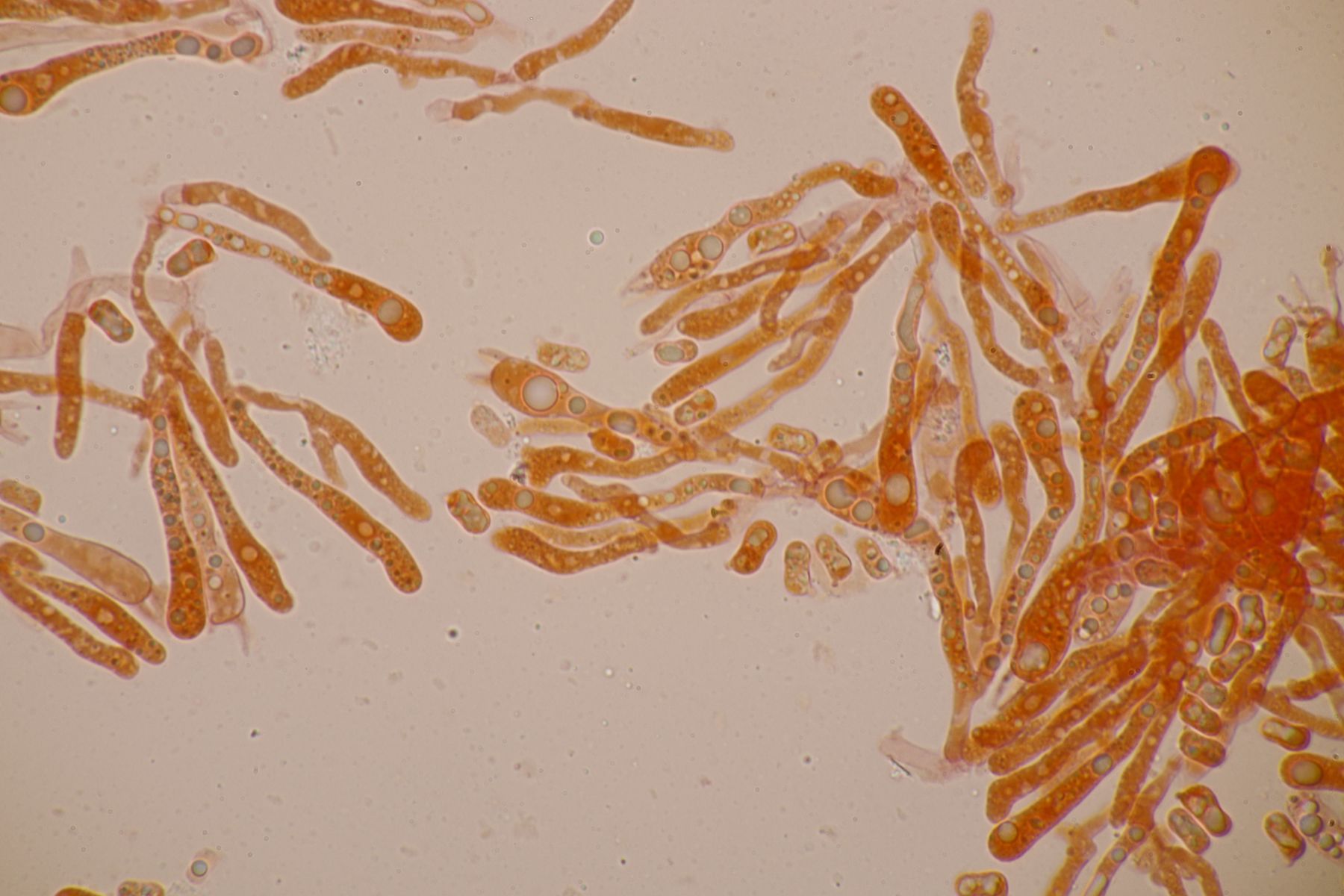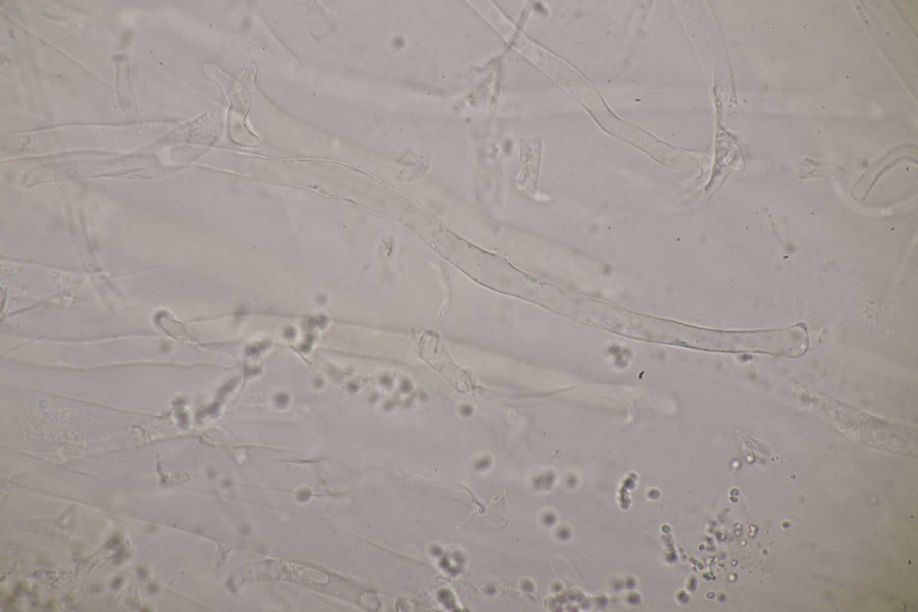 9. Hier stehe ich auf dem Schlauch: Eigentlich sieht das ja schon nach einer Lepista aus, aber die Sporen sind im Abwurf rein weiß, weder amyloid noch dextrinoid und mikroskopisch auch in BWB glatt.