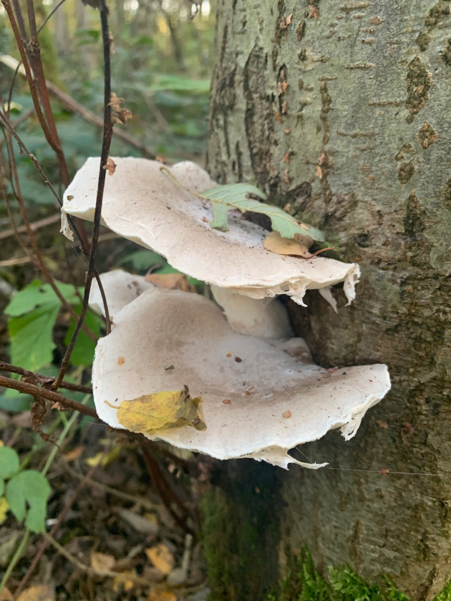 Erkennt jemand diese Pilze? Sie wuchsen in ca. 1m Höhe an Laubholz, den Baum habe ich mir nicht gemerkt, aber es ist in der Nähe einer Bachaue, eher lichtes Gehölz/„Wäldchen“, Birken, Buchen, Holunder, Brombeeren…. Am Boden sind Perlpilze, Fliegenpilze, Knollenblätterpilze unterwegs.