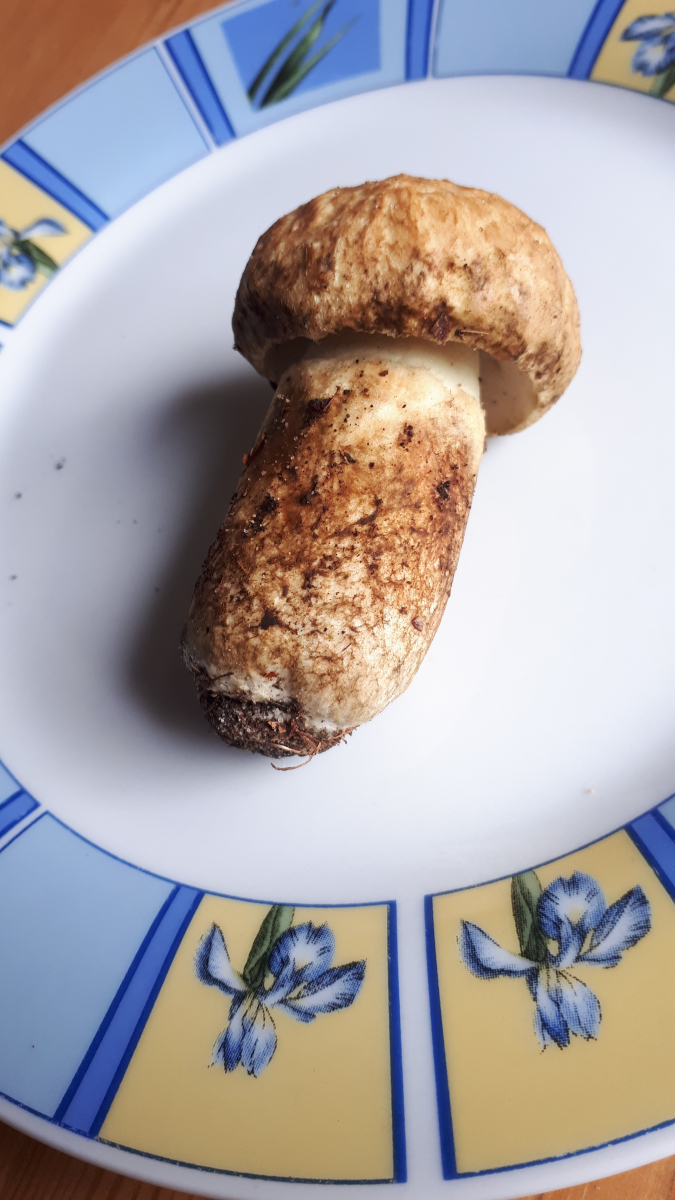 Der Hut war farblich nah an ner hellen Flockenhexe, der Stiel gelb und die Röhren auch. Besonders auffällig war das direkte Blauen bei Berührung und beim Längsschnitt. Ebenfalls die dunkle Rotfärbung an der Stielbasis.
