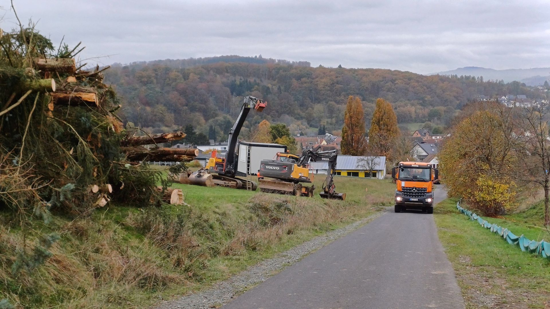 Doch angesichts gefällter Bäume, Markierungsstäben und großer Maschinen sinkt meine Hoffnung.