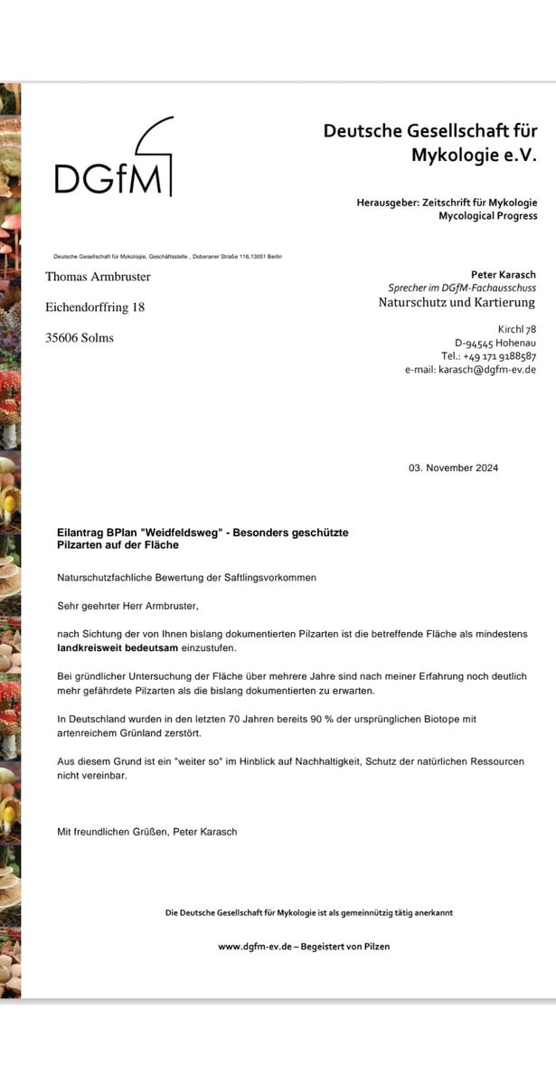 Daher ist es wichtig, dass der Rechtsanwalt der Naturschutz-Verbände schnellstmöglich eine offizielle Bestätigung für die Wertigkeit dieses Saftling-Bestandes erhält.