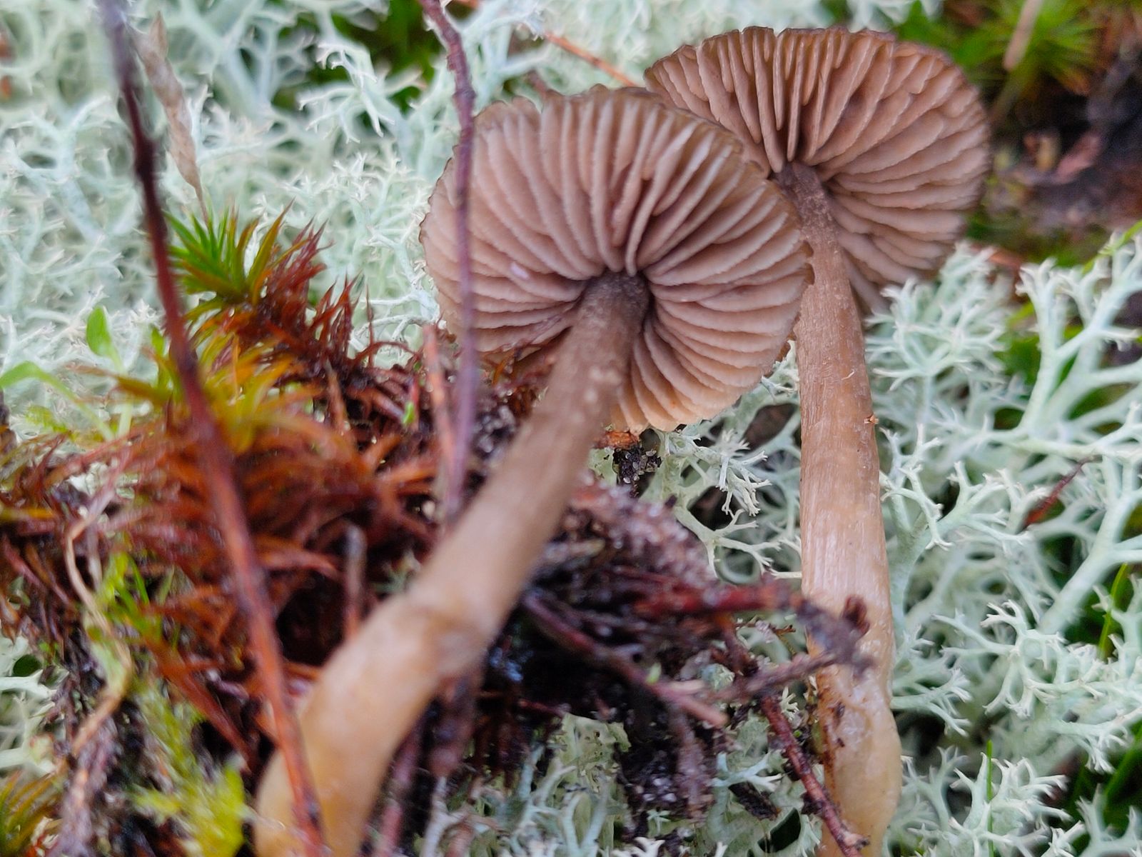 Die zwei nun gezeigten Entolomas wurden im Flechtenmoos/Heidekraut bei kiefer in der Übergangszone zwischen Dünen und Kiefernplantage gemacht.