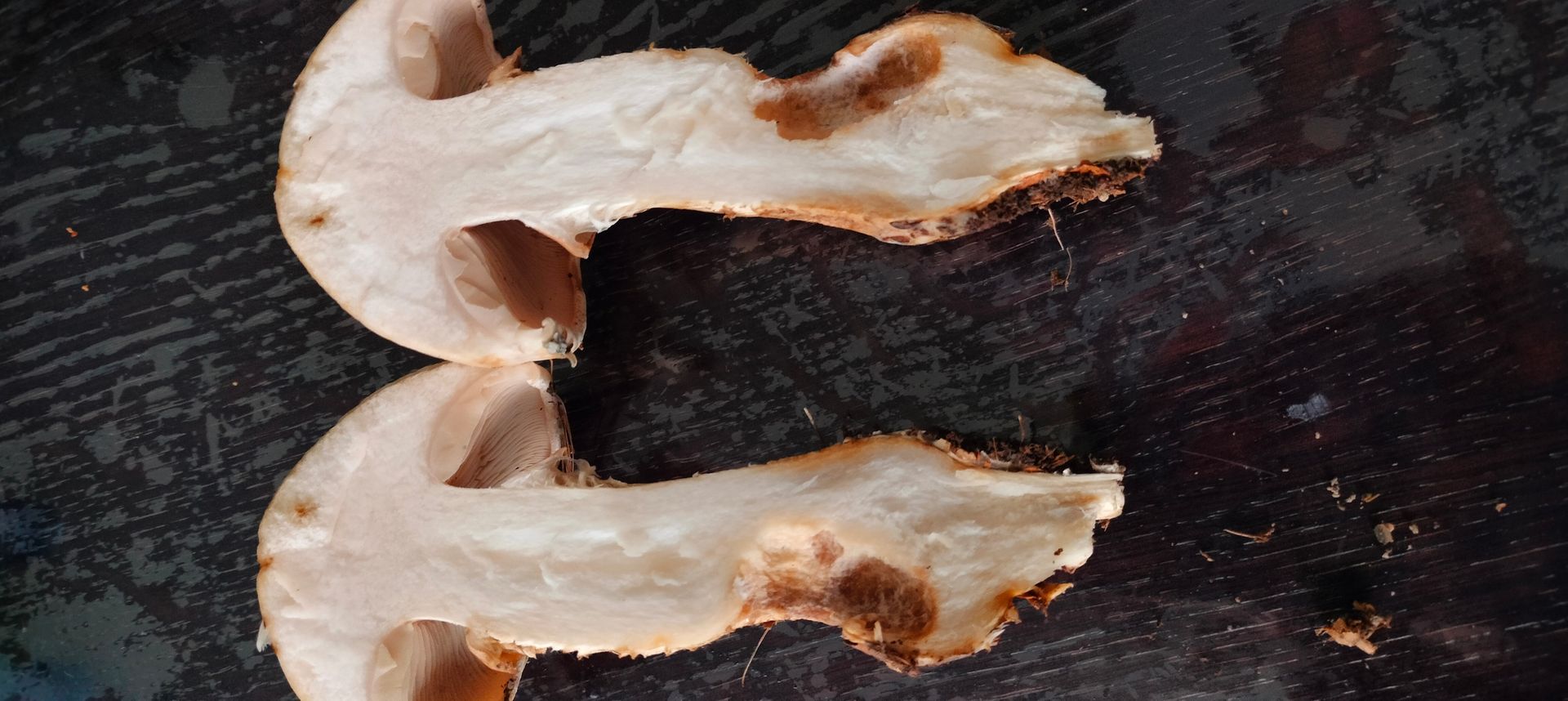 Na, nach dem Anschneiden des Pilzes nach einem Marzipangeruch.