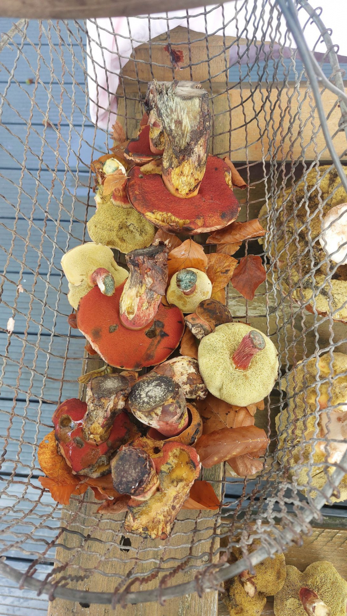 Schade, dass du so viele Fruchtkörper entnommen hast, bei denen du die nicht sicher bist, was es ist. Jetzt stehen die dem Ökosystem nicht mehr zur Verfügung. Vielleicht wäre es günstig, dann zunächst ein bis zwei Exemplare mitzunehmen, diese sicher zu bestimmen, und die ggf. erst dann zu sammeln, wenn du sie sicher kennst. Oder du gehst zum Pilzsachverständigen, der sie sicher bestimmt. Alte Schlappen kannst du direkt im Wald lassen. Ich habe diesen Fehler zu Beginn auch mal gemacht, also nimm es bitte als Anregung und nicht als doofe Schimpfe