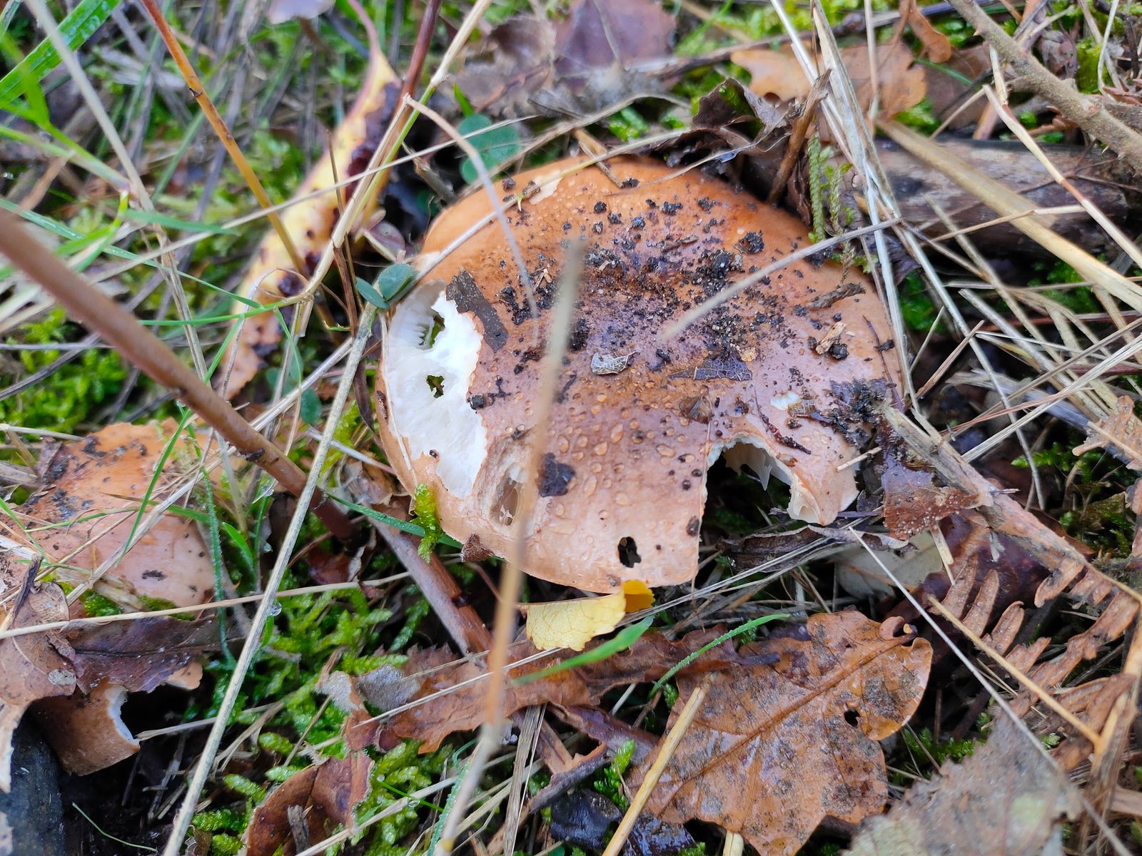 Die Huthaut konnte ich ganz leicht bis fast zur Mitte entfernen. Der FK wirkte eher etwas gedrungen. Der Baumbestand war leider nicht klar (Wegesrand) mit viel angrenzendem Farn. Das Bild vom Habitat ist leider komplett unbrauchbar um jetzt noch den mykorrhiza Partner bestimmen zu können. In diesem Bereich ist aber mit Kiefer, Birken und auch mit Pappel zu rechnen.