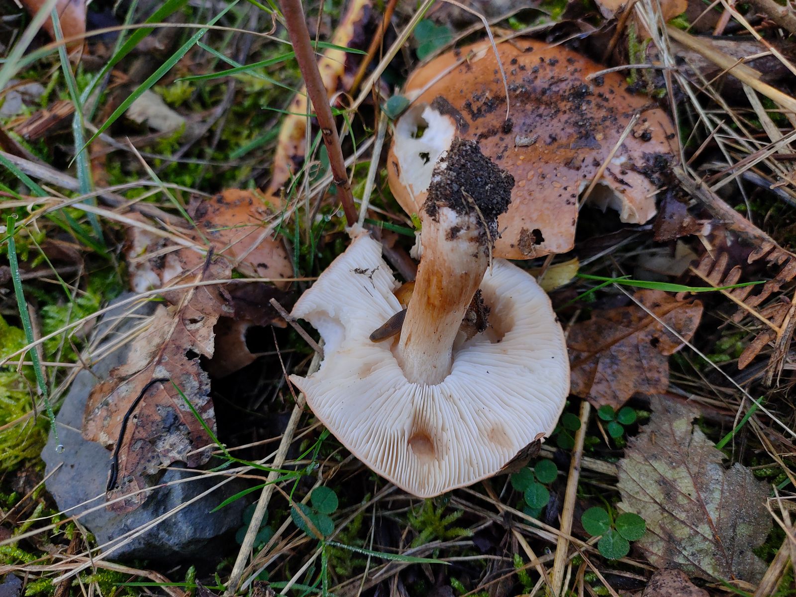 Die Huthaut konnte ich ganz leicht bis fast zur Mitte entfernen. Der FK wirkte eher etwas gedrungen. Der Baumbestand war leider nicht klar (Wegesrand) mit viel angrenzendem Farn. Das Bild vom Habitat ist leider komplett unbrauchbar um jetzt noch den mykorrhiza Partner bestimmen zu können. In diesem Bereich ist aber mit Kiefer, Birken und auch mit Pappel zu rechnen.