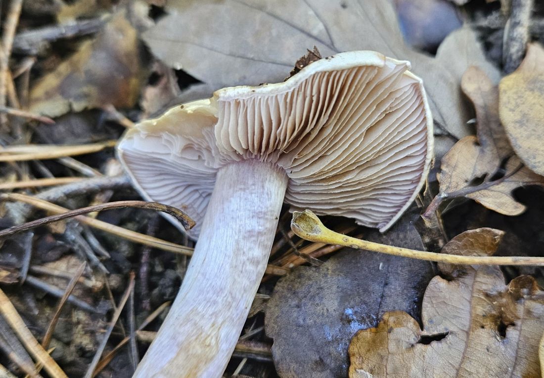 Die Lamellen sind gräulich mit bläulichem Schimmer.