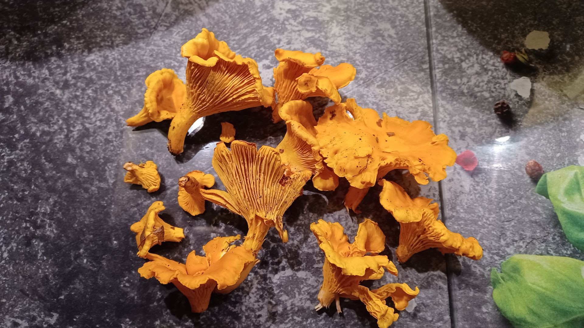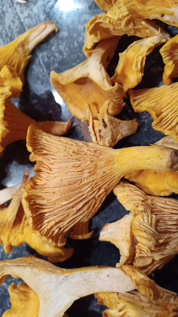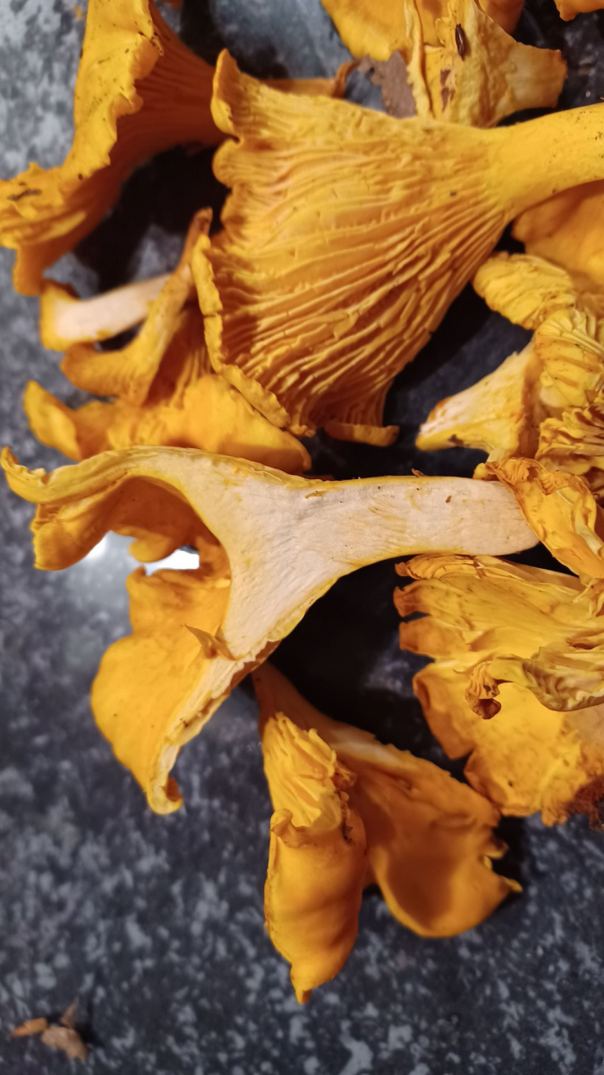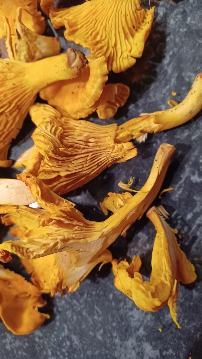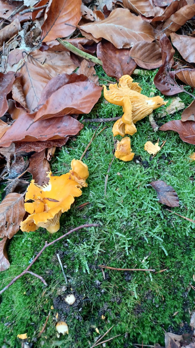 wir waren heute mal wieder unterwegs und haben in einem Buchenmischwald ganz unerwartet (da dort noch nie gefunden) offensichtlich Pfifferlinge gefunden.