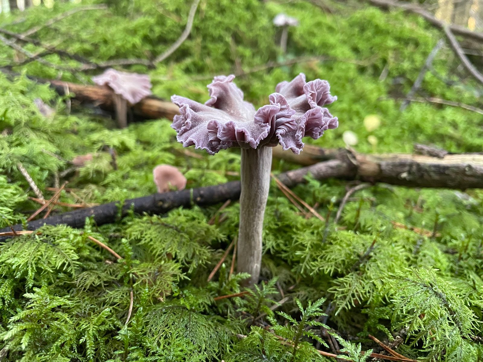 So ganz uninteressant war die Tour allerdings trotzdem nicht. Es hat nämlich endlich mit meinem Erstfund vom Trompetenpfifferling geklappt - genauer gesagt dem Gelbstielige Trompetenpfifferling.