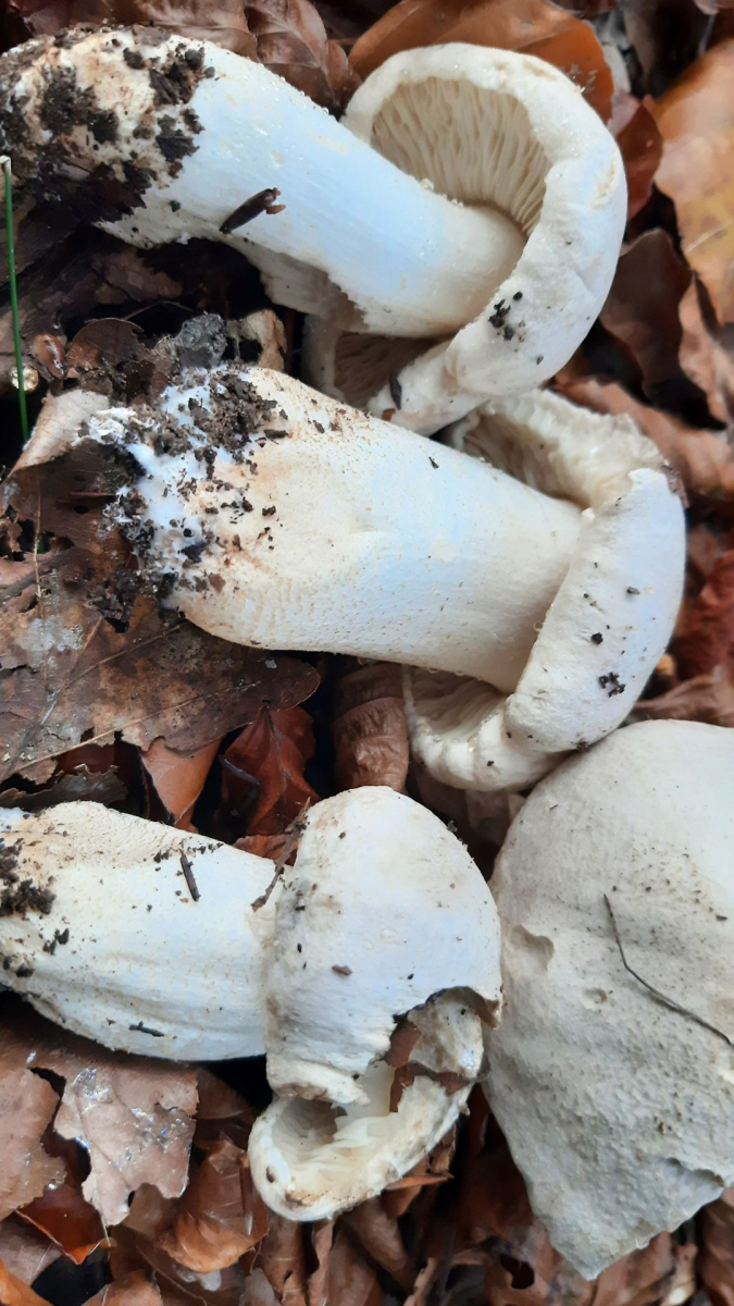 Markant finde ich die - in Vergleich zu den Erdritterlingen - großen und kräftigen Fruchtkörper und die Guttationstropfen am Stiel.