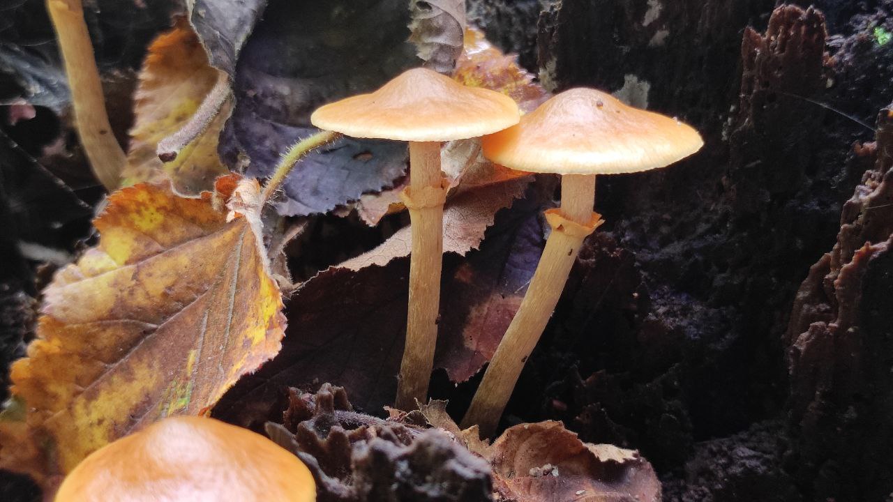 Pilze an Baumstumpf; Stockis (war meine erste Idee), "böse Zwillinge" oder was ganz Anderes?