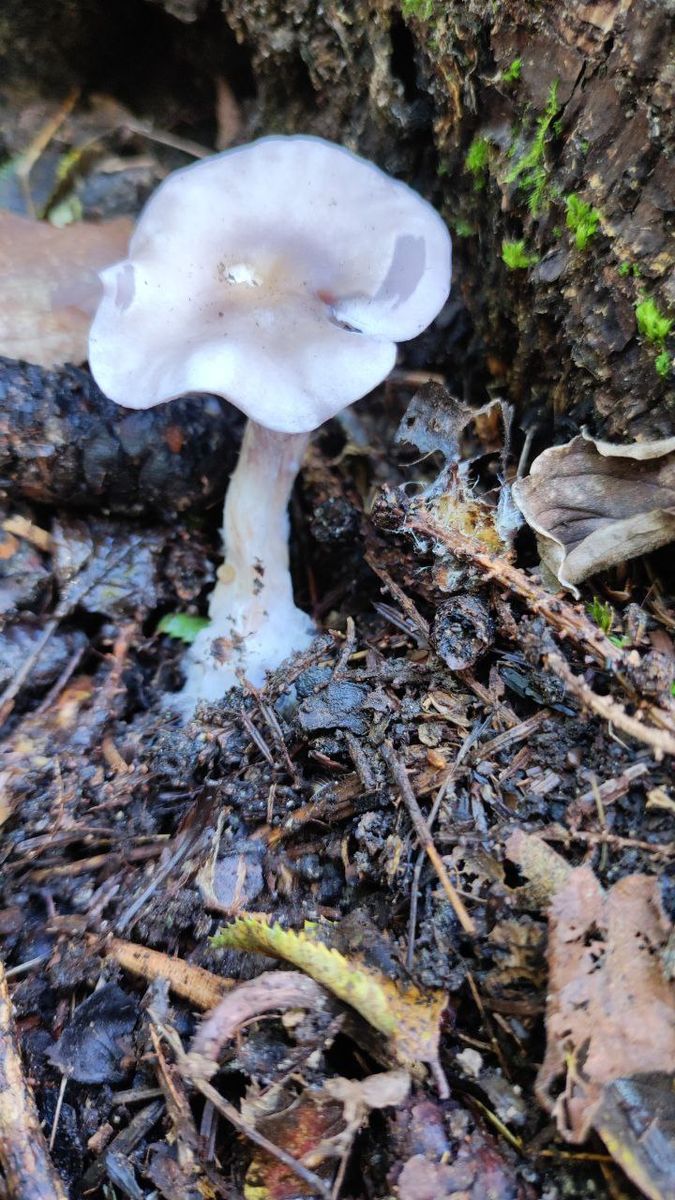 Dieses nette violette Fruchtkörperchen dürfte m.E. eine vermickerte Lepista nuda sein. Ist schon mehrmals in meinem Garten erschienen.
