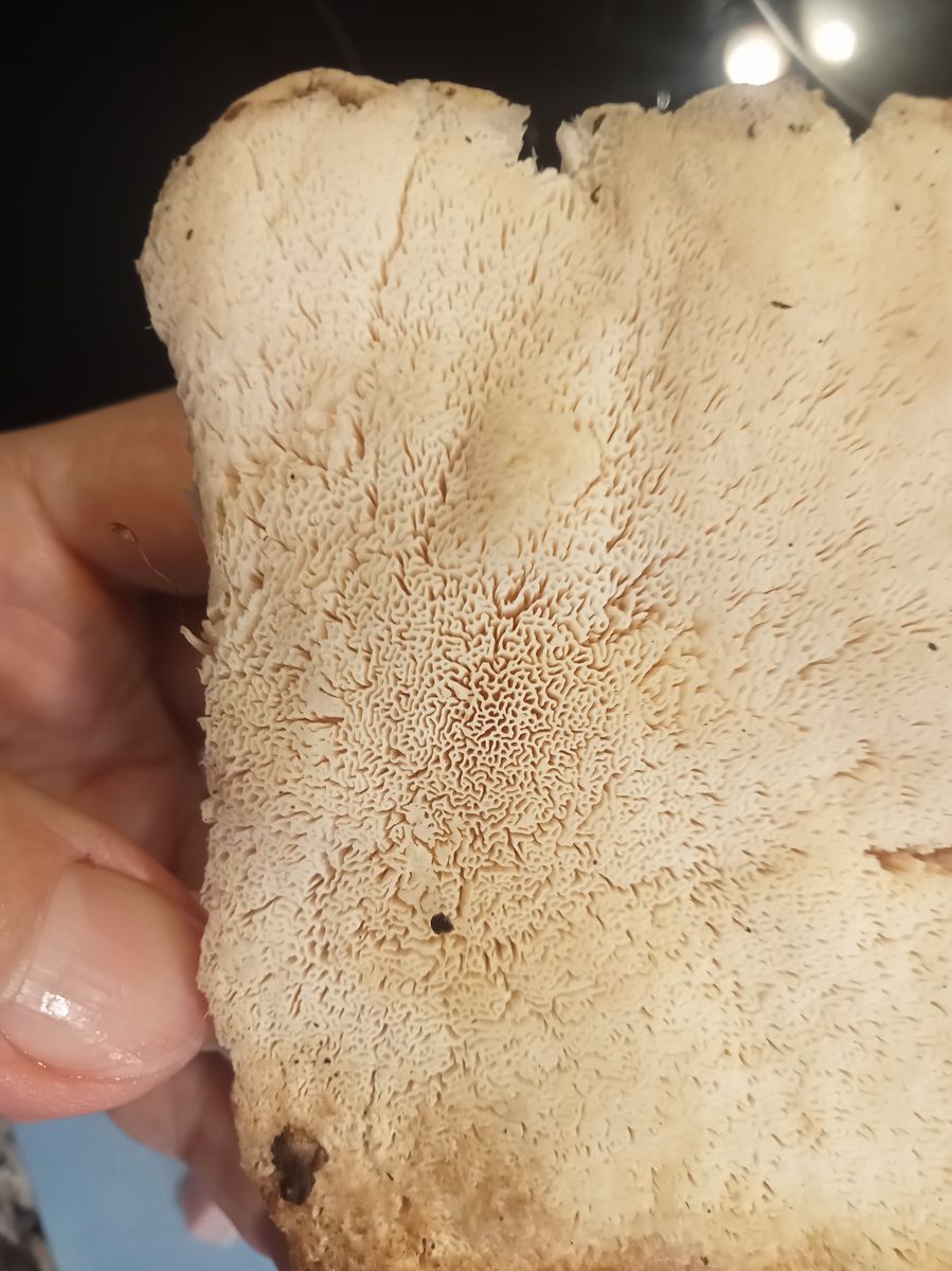 ich weiß auch nicht, was das für ein Pilz ist. Ich frage mich aber, wie lange man den kochen müßte, bis man ihn überhaupt so zerbeißen kann, daß er ohne Erstickungsgefahr in den Magen befördert werden kann.