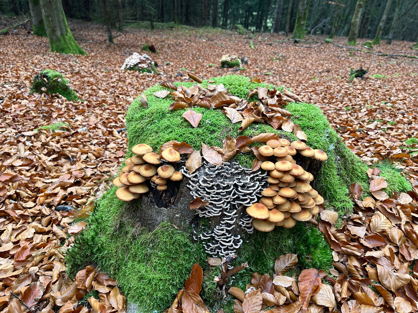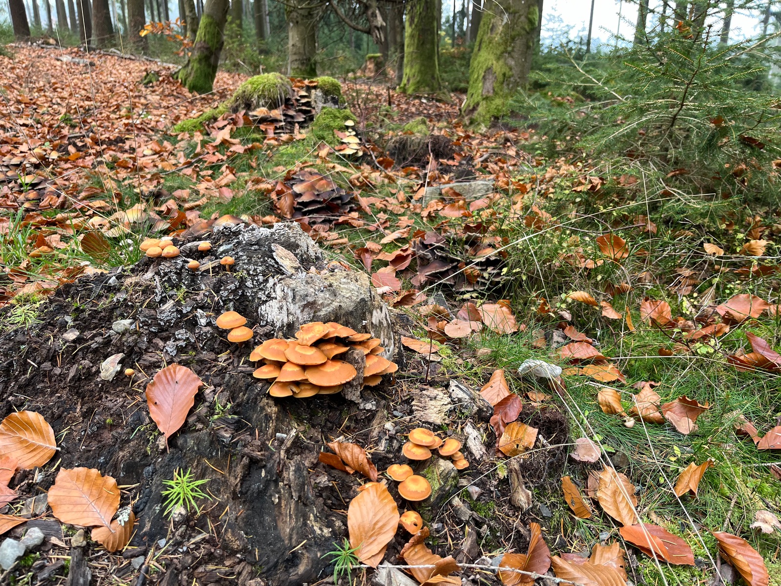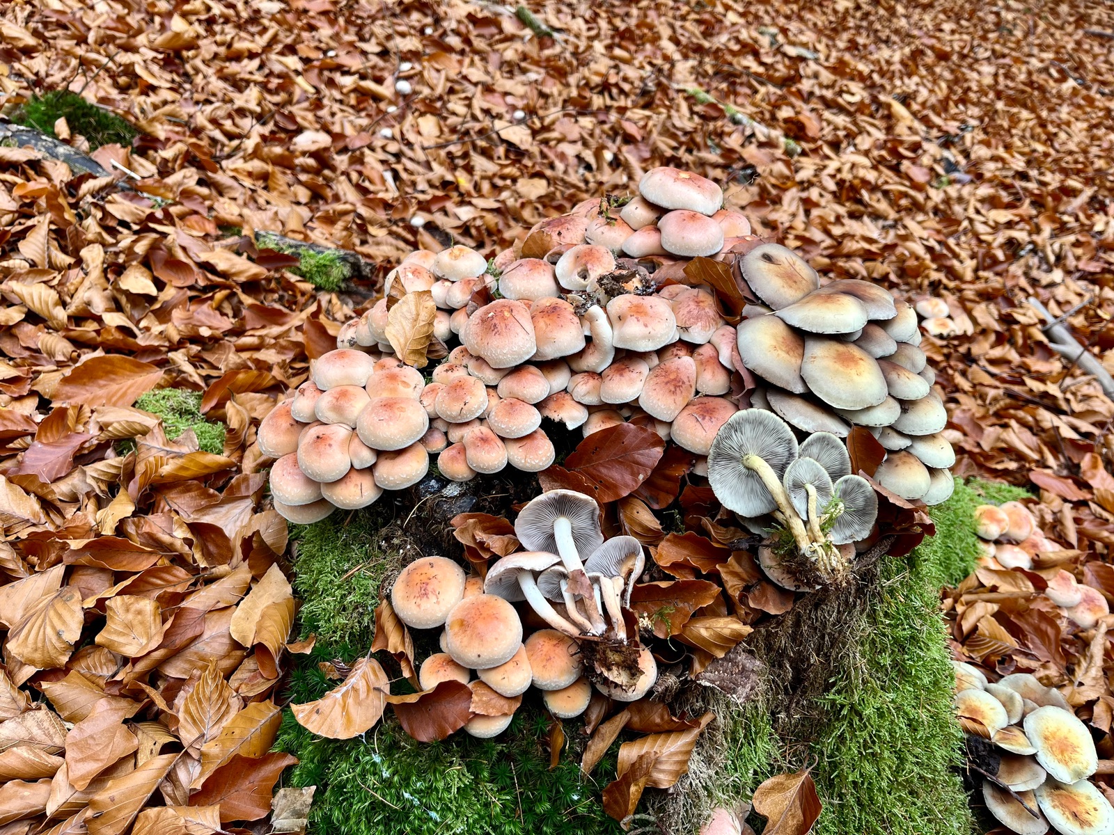 Die Zeit der Röhrenpilze neigt sich dem Ende. Aber die gute Pilzzeit läuft noch immer auf Hochtouren. Schnecklinge, Ritterlinge und vor allem Stockschwämme, worunter der gemeine Dorfbewohner und selbstredend auch die Dorfbewohnerin alles, was am „Stock“ wächst, zusammenfasst, sprießen aus allen Knopflöchern. Hallimasch erspare ich euch. Aber am echten Stockschwämmchen, das sich hier sonst eher rar macht, lasse ich euch gern teilhaben. Erstaunlich auch: der Gifthäubling, tückischer und tödlich giftiger Verwechslungspartner, ließ sich nirgends blicken.