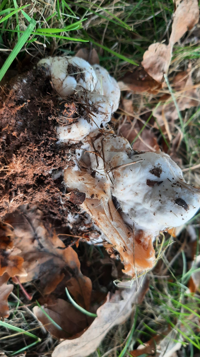Gestern habe ich in mehreren Metern Entfernung zu einer sehr alten Eiche diesen halb oberirdisch wachsenden Klumpen gefunden. Fundort 63939 Wörth am Main, Weinbauklima, leicht basischer Lehmboden.