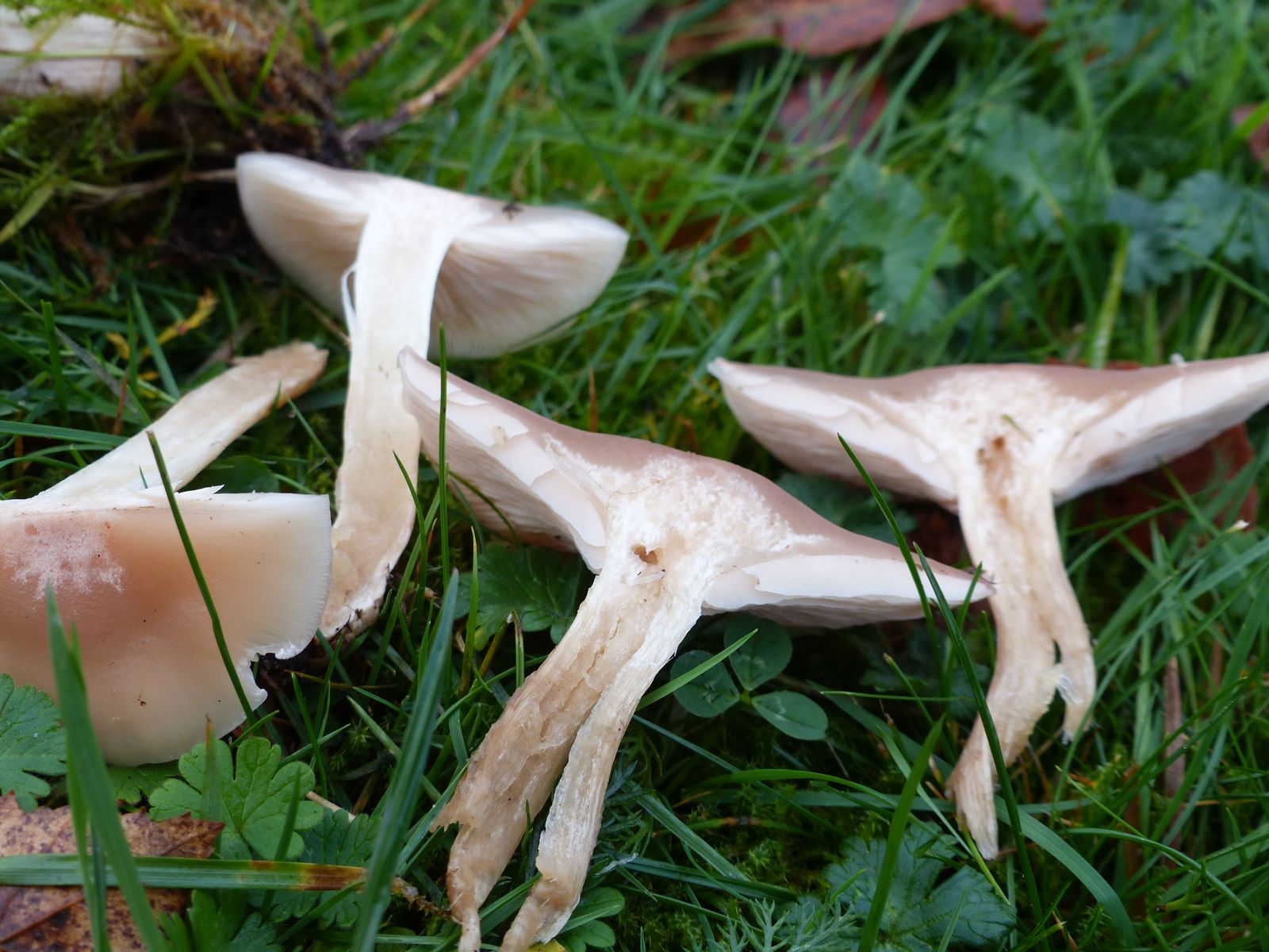 Das Fruchtfleisch von innen sieht heller aus als bei Lepista nuda.