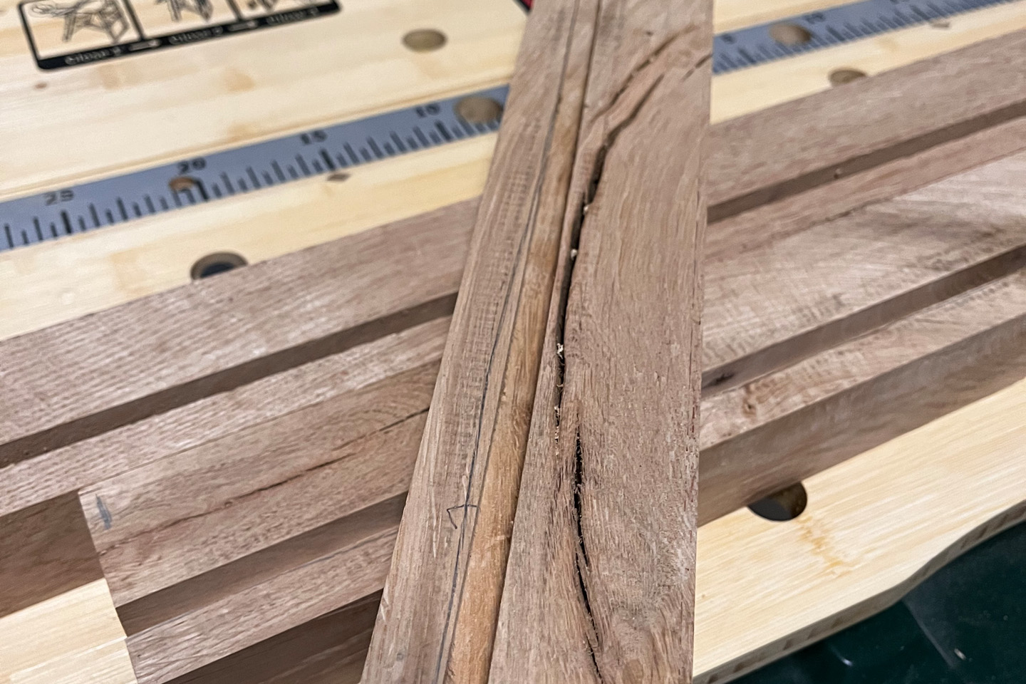 Größere Fehlstellen, Äste und Risse konnte ich so natürlich aussortieren oder (wenn sie interessant aussahen) drinlassen und später füllen.