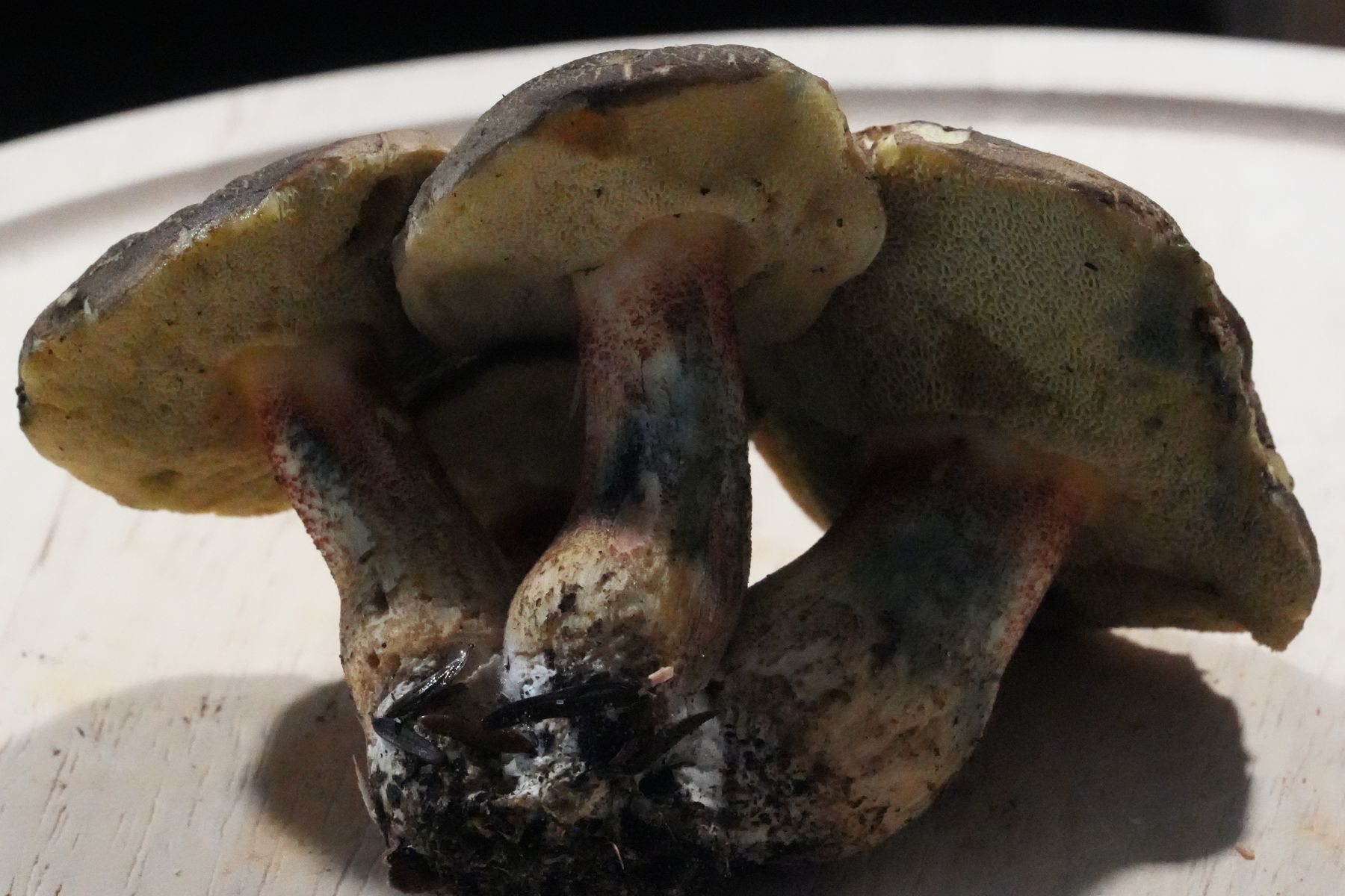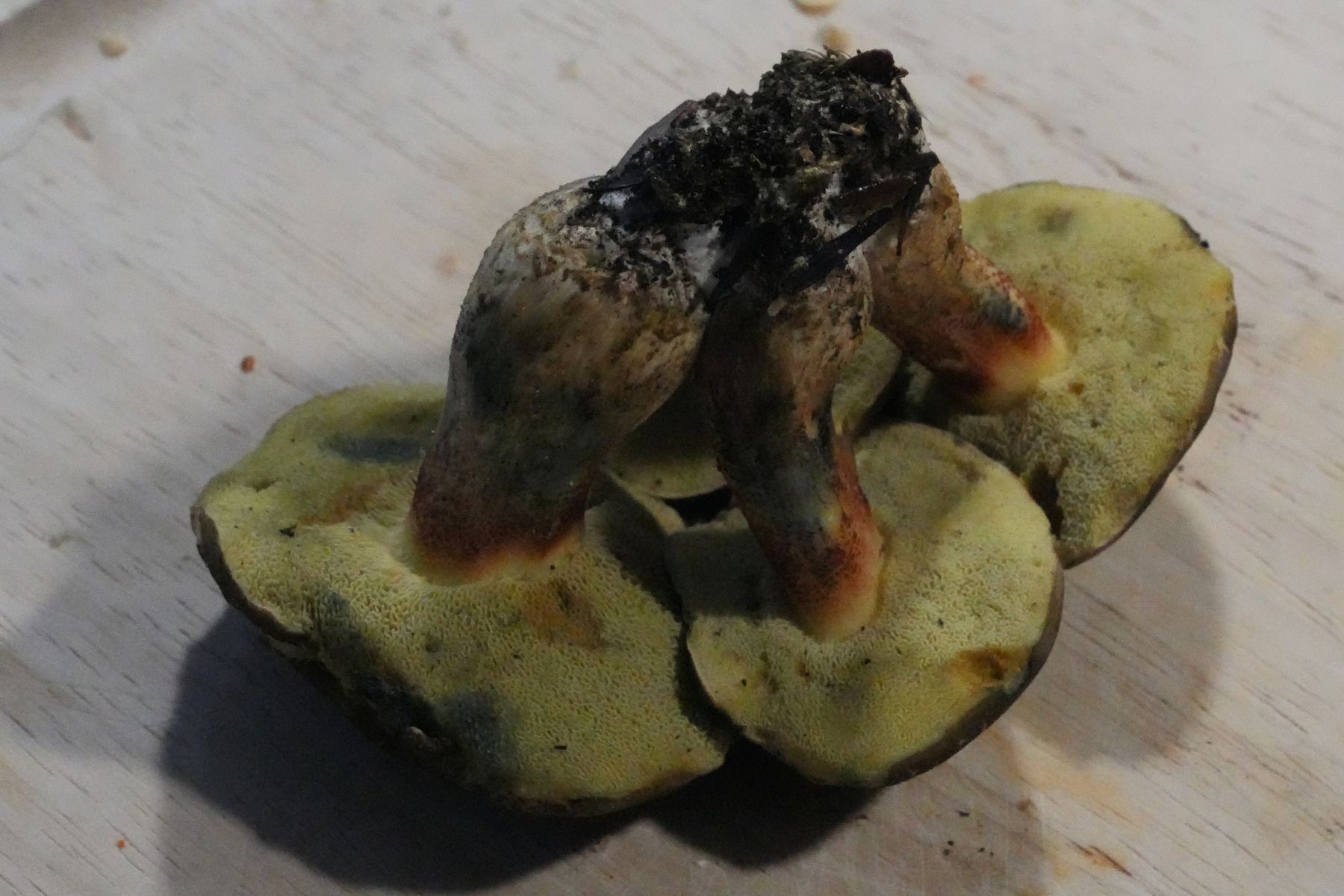 für deine Pilze hätte ich noch die Idee des Starkblauenden Rotfußröhrlings (Xerocomellus cisalpinus). Wie sein Name schon sagt, blaut auch dieser sehr stark und kann damit einen Schwarzblauenden Röhrling vortäuschen. Die Hutoberfläche ist dagegen typisch "rotfußröhrlingsmäßig", so wie hier zu sehen.