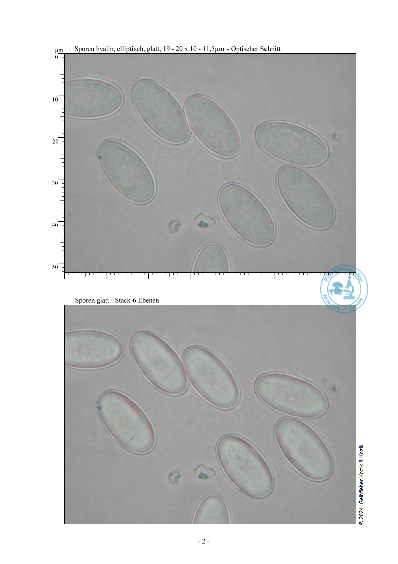 Sporen hyalin, elliptisch, glatt, 19 – 20 x 10 – 11,5µm