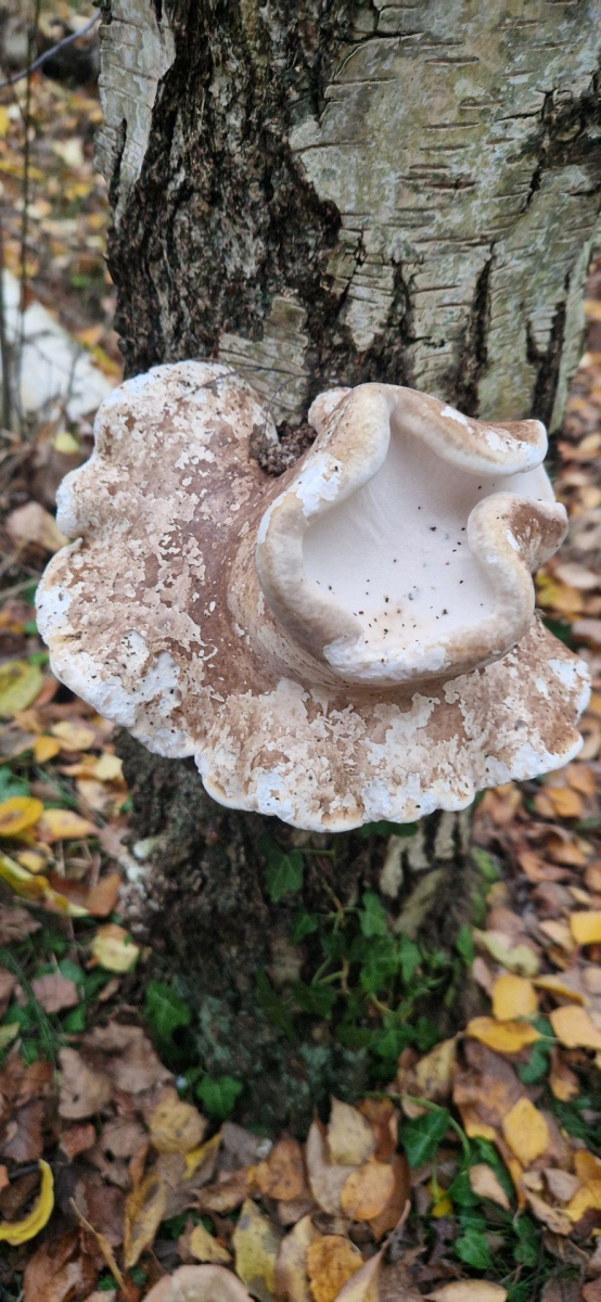 • Hallo allerseits, ich habe vorhin dieses interessante Exemplar eines Birkenporlings gefunden. Die Porenschicht befindet sich lustigweise in einer Art "Trichter" auch auf der Oberseite, ist das eine bekannte Mutation? Weiß vielleicht jemand wie sowas zustande kommt? Habe sowas noch nie gesehen.