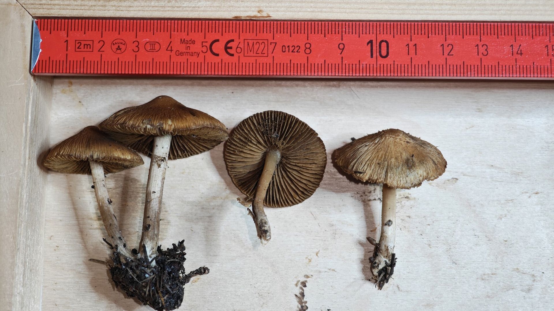 Kürzlich habe ich bei uns noch eine Gruppe Risspilze gefunden. Der Fundort lag auf ca. 1800m bei Fichte und Lärche in kalkreichem Gebiet. Leider scheinen die Pilze schon ziemlich alt zu sein und daher ist eine Bestimmung vielleicht gar nicht mehr möglich. Ich bin beim Schlüsseln jedenfalls zu keinem zufriedenstellenden Ergebnis gekommen, da immer wieder Merkmale nicht gepasst haben. Da ich aber alle Daten erhoben habe, möchte ich sie dennoch hier noch zeigen, da Ditte vielleicht ja doch noch etwas dazu sagen kann. Der Geruch war leicht spermatisch.