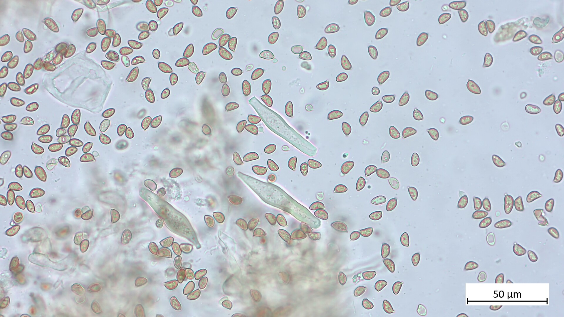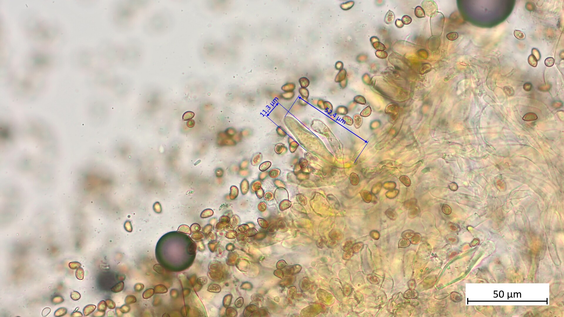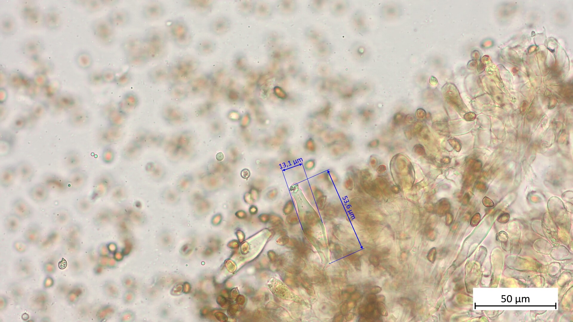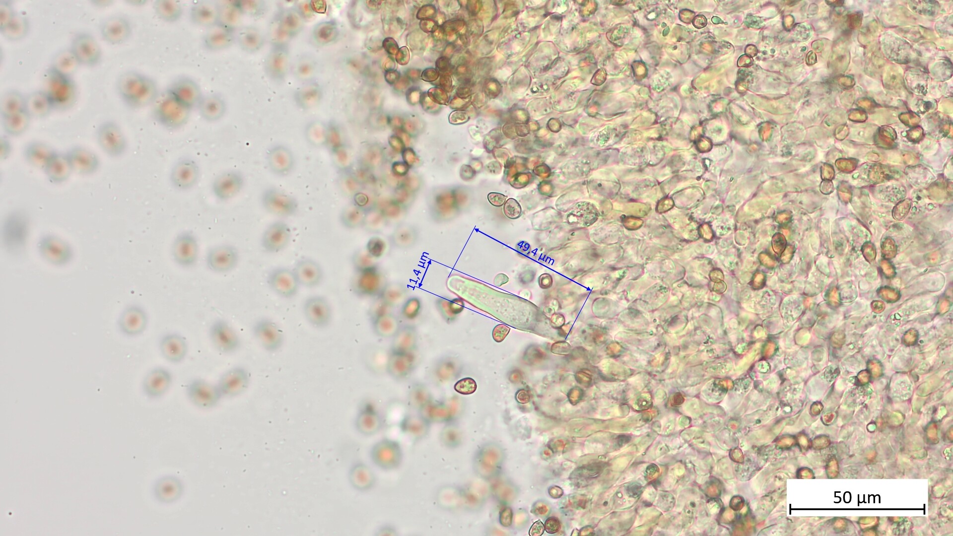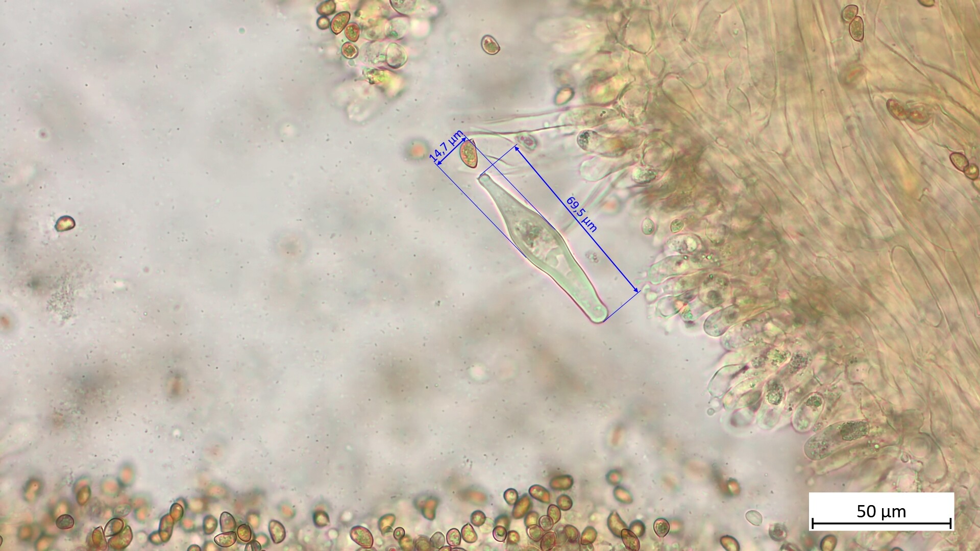 • Hatte vergessen, deine Frage zu beantworten: Um sicher zu sein, dass man nur die Pleurozystiden erwischt, musst du ein Stückchen Lamelle nur innen rausschneiden. Und für die Cheilos wirklich nur die Schneide. Die Cheilos sind manchmal variabler in der Form.