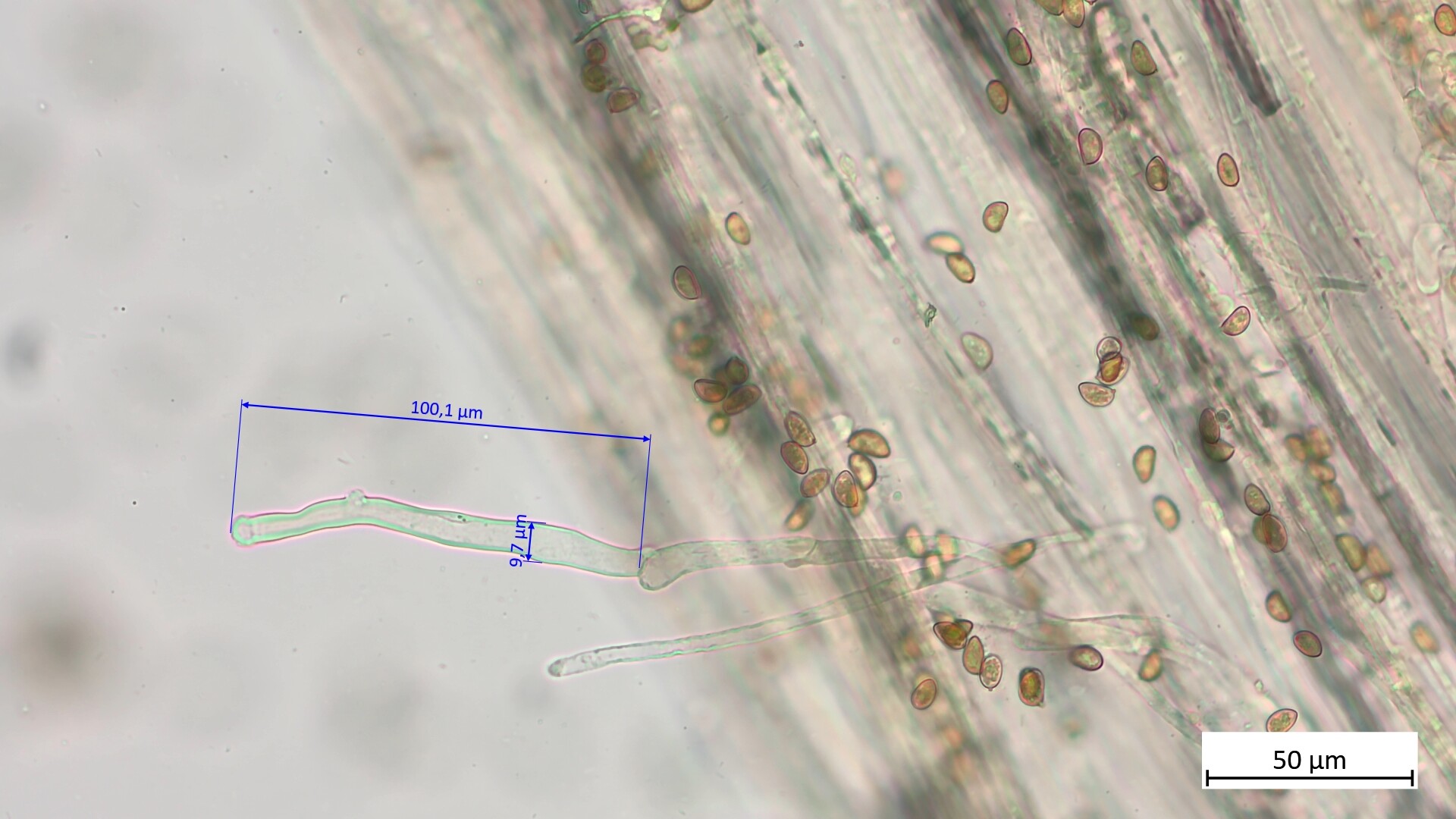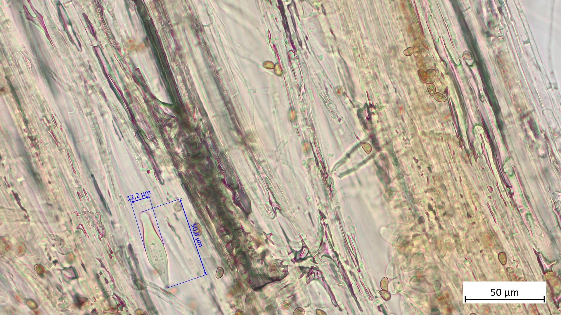 Ich habe nochmals ein Stückchen Lamelle mikroskopiert und dabei die Zystiden, die evtl. in Frage kommen könnten geknipst. Für mich ist es aber schwierig zu beurteilen, wie wellig sie sein müsste und ob da etwas dabei ist. :) Daher hier ein paar zur Auswahl: