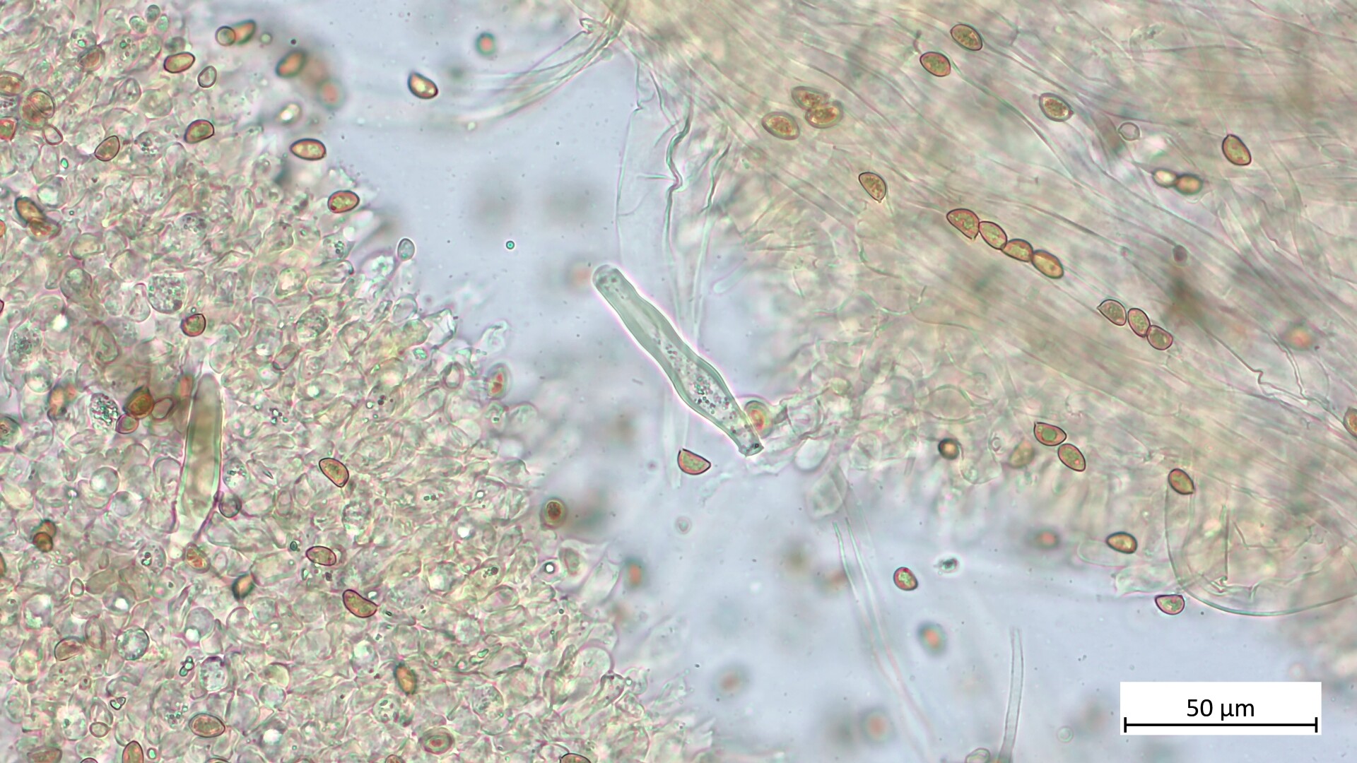 vielen Dank für die Antwort. Ich habe die Art mal im Ludwig nachgeschlagen und mich verwirrt der Name dabei etwas, denn er heisst auf Deutsch bei Ludwig Kaulozystidenloser Risspilz und er schreibt auch KauloZ. fehlend. Aber es sind doch Kaulos vorhanden, sogar zwei Formen, oder? Diese langen welligen, sowie kürzere, die aussehen wie die Lamellenzystiden. Stimmt da etwas bei Ludwig nicht? Bei den Lamellenzystiden ist es für mich auch immer unmöglich, zu sagen, ob es eine Cheilozystide oder eine Pleurozystide ist, ausser ich schaue auf die Position, wo sie liegt (Cheilos direkt an der Lamellenschneide). Kann man eigentlich, auch ohne die Position zu wissen, sagen, ob es eine Cheilo- oder eine Pleurozystide ist? Und falls ja, wie sieht man das?