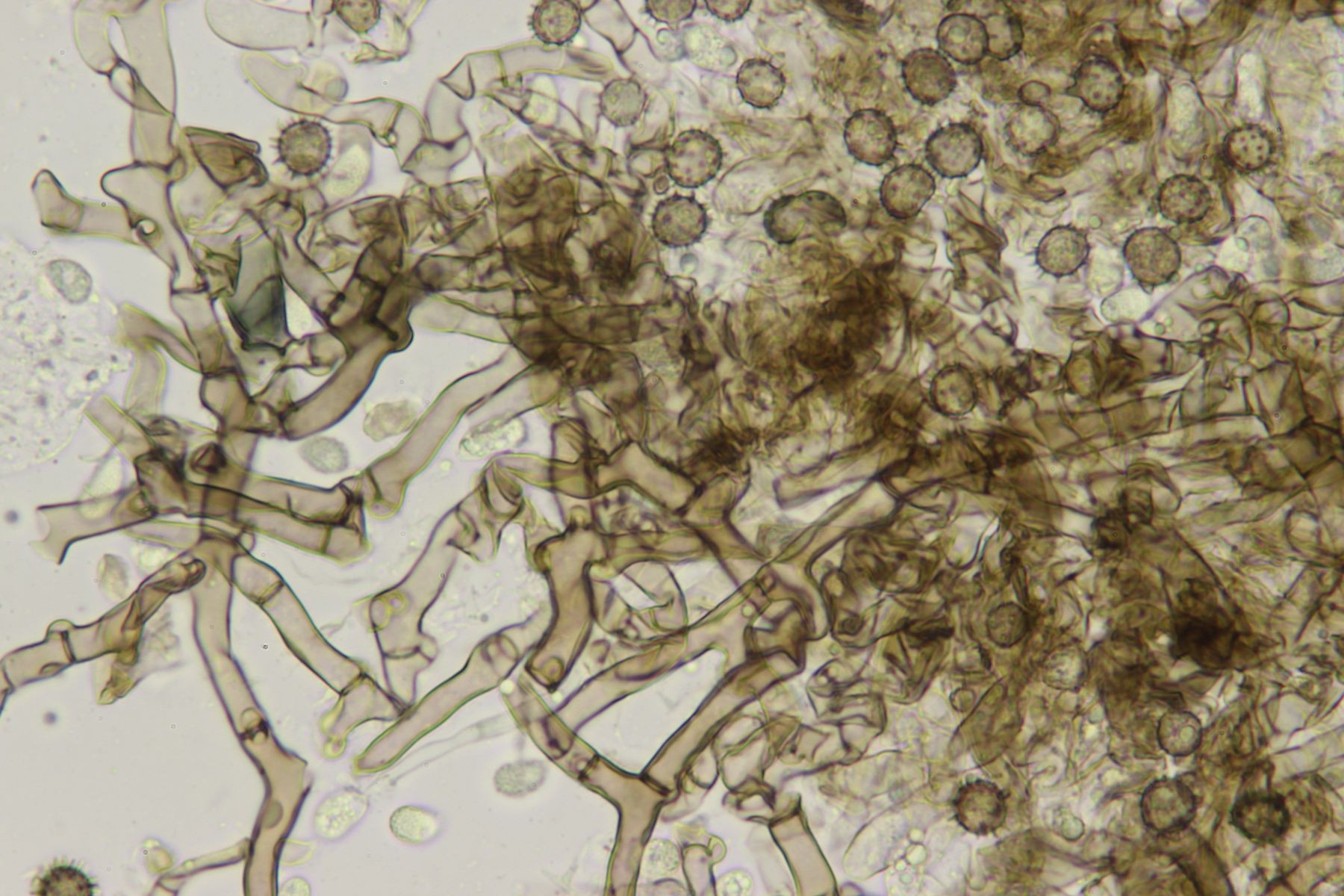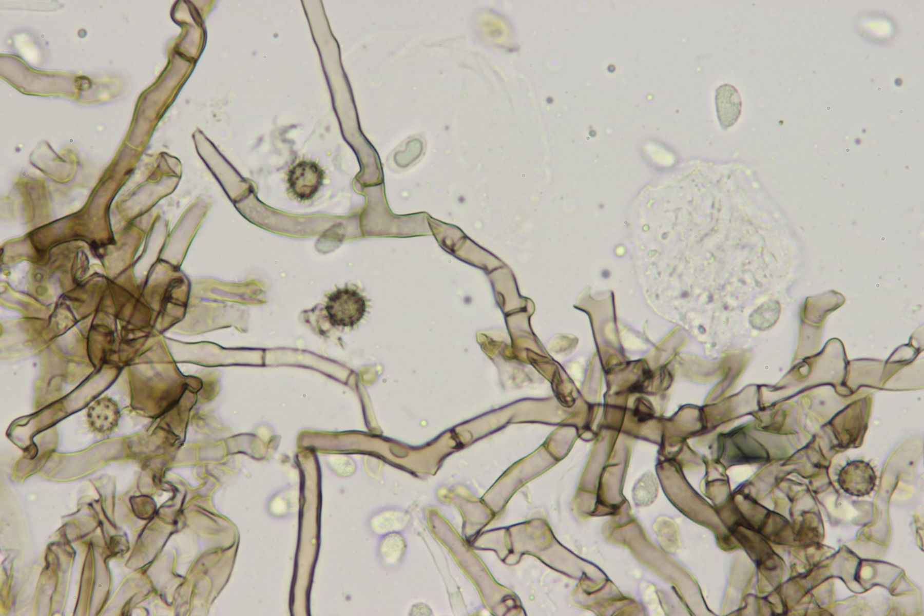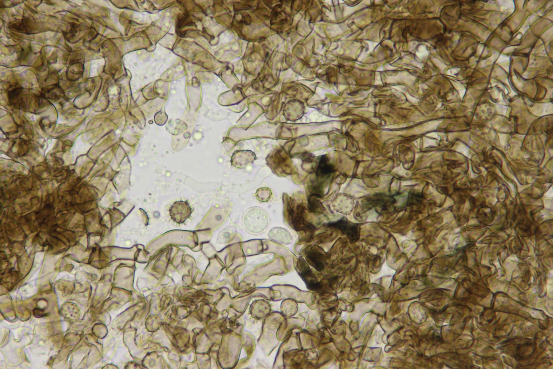 Subikularhyphen sind dickwandig und braun gefärbt.