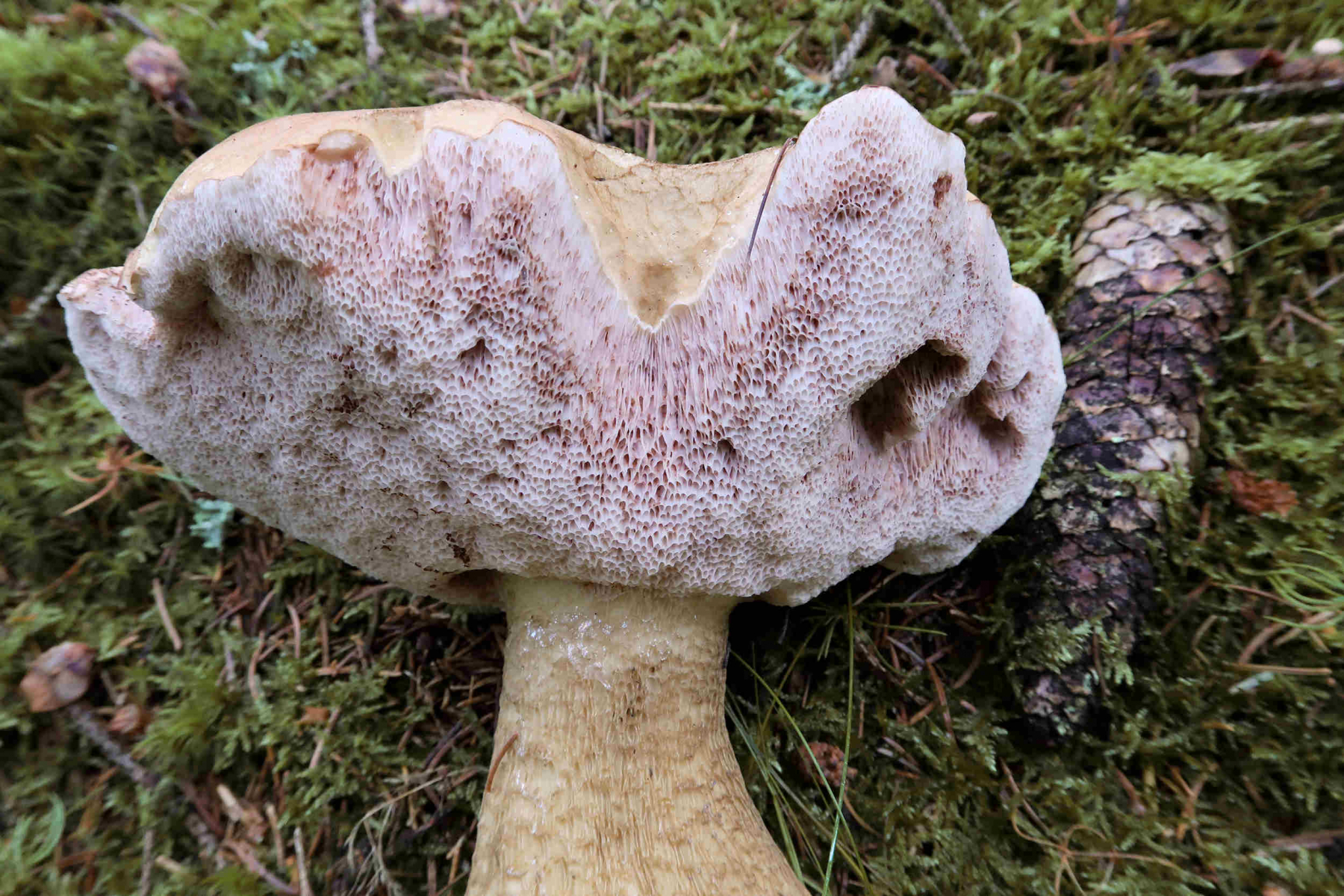 Im Feld kann schon auch die Farbe des Sporenpulvers sehen, hier mal ein Beispiel am Gallenröhrling: